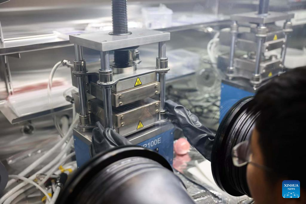 A researcher from the Chinese Academy of Sciences' Institute of Physics (IOP) conducts research on two-dimensional (2D) metal in Beijing, capital of China, in March 2025. (Chinese Academy of Sciences' Institute of Physics/Handout via Xinhua)