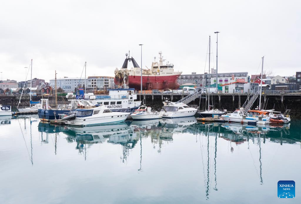 This photo taken on March 15, 2025 shows a view at a harbor in Reykjavik, Iceland. (Xinhua/Zhang Fan)