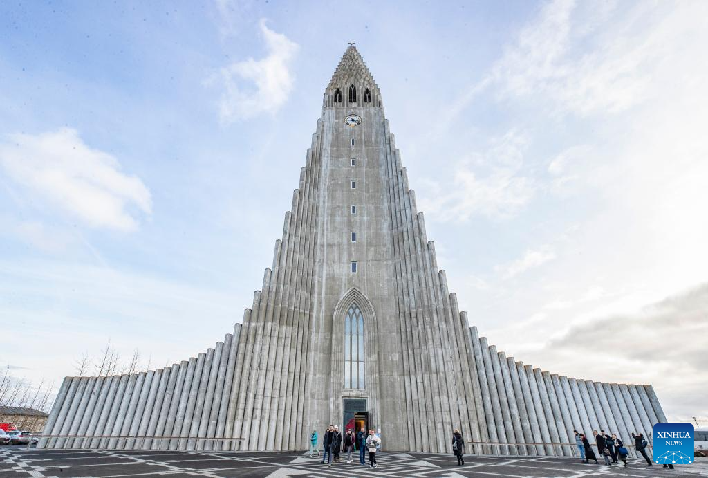 This photo taken on March 15, 2025 shows the Hallgrimskirkja church in Reykjavik, Iceland. (Xinhua/Zhang Fan)
