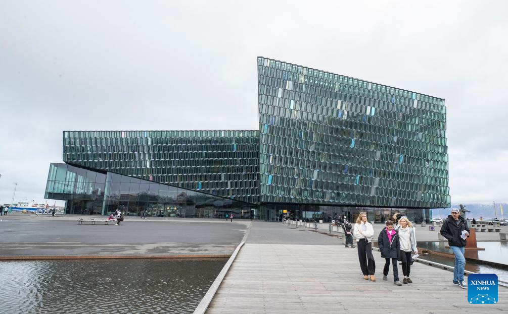 This photo taken on March 15, 2025 shows the view of Harpa Concert Hall and Conference Center in Reykjavik, Iceland. (Xinhua/Zhang Fan)