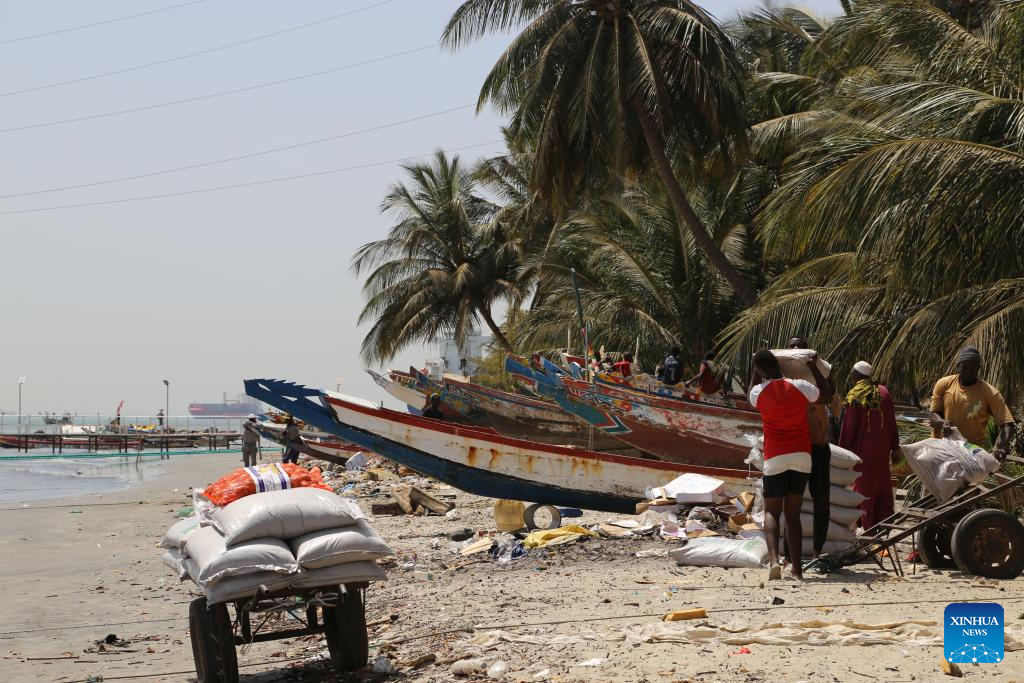 This photo taken on March 15, 2025 shows the view of a fishing wharf in Banjul, capital of The Gambia.