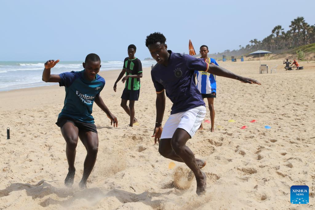 Locals practice at a beach in Serrekunda, The Gambia, on March 11, 2025.