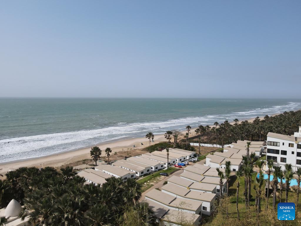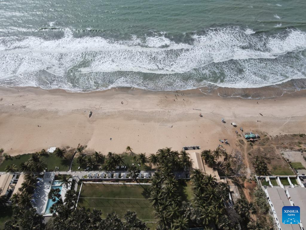 A drone photo shows the scenery of a beach in Serrekunda, The Gambia, on March 12, 2025.