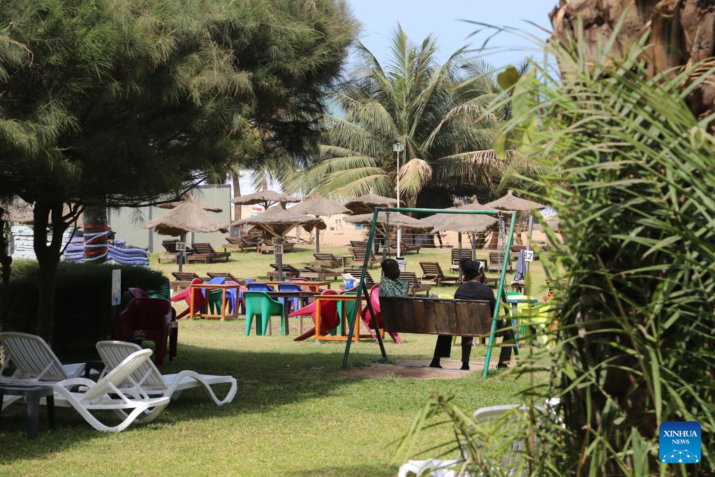 People rest at a hotel in Serrekunda, The Gambia, on March 11, 2025.