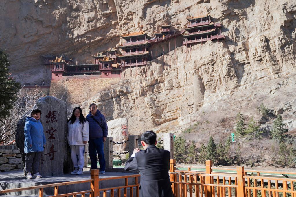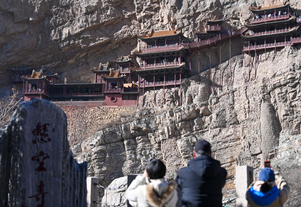 This photo taken on Feb. 28, 2025 shows the Hanging Temple, or Xuankong Temple, in Hunyuan County, Datong City in north China's Shanxi Province. (Xinhua/Yang Chenguang)Tourists visit the Hanging Temple, or Xuankong Temple, in Hunyuan County, Datong City in north China's Shanxi Province, on Feb. 28, 2025. (Xinhua/Yang Chenguang)Tourists pose for photos in front of the Hanging Temple, or Xuankong Temple, near Mount Heng in Hunyuan County, Datong City in north China's Shanxi Province, on Feb. 28, 2025. (Xinhua/Fu Tian)This photo taken on Feb. 28, 2025 shows the Hanging Temple, or Xuankong Temple, in Hunyuan County, Datong City in north China's Shanxi Province. (Xinhua/Zhan Yan)Tourists take photos in the Hanging Temple, or Xuankong Temple, in Hunyuan County, Datong City in north China's Shanxi Province, on Feb. 28, 2025. (Xinhua/Fu Tian)Tourists take photos in front of the Hanging Temple, or Xuankong Temple, in Hunyuan County, Datong City in north China's Shanxi Province, on Feb. 28, 2025. (Xinhua/Yang Chenguang)This photo taken on Feb. 28, 2025 shows the Hanging Temple, or Xuankong Temple, in Hunyuan County, Datong City in north China's Shanxi Province. (Xinhua/Zhan Yan)An aerial drone photo taken on Feb. 28, 2025 shows the Hanging Temple, or Xuankong Temple, in Hunyuan County, Datong City in north China's Shanxi Province. (Xinhua/Zhang Keren)This photo taken on Feb. 28, 2025 shows the Hanging Temple, or Xuankong Temple, in Hunyuan County, Datong City in north China's Shanxi Province. (Xinhua/Yang Chenguang)