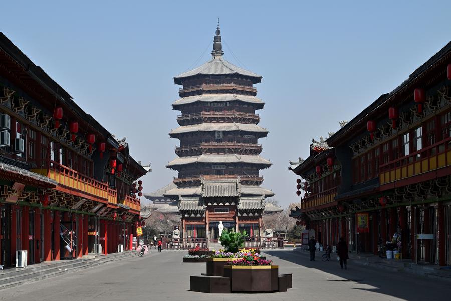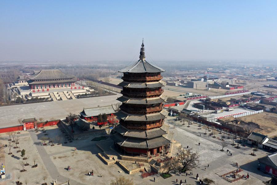 An aerial drone photo taken on Feb. 27, 2025 shows the Sakyamuni Pagoda of Fogong Temple in Yingxian County, north China's Shanxi Province. (Xinhua/Zhan Yan)This photo taken on Feb. 27, 2025 shows the Sakyamuni Pagoda of Fogong Temple in Yingxian County, north China's Shanxi Province. (Xinhua/Zhan Yan)This photo taken on Feb. 27, 2025 shows the Sakyamuni Pagoda of Fogong Temple in Yingxian County, north China's Shanxi Province. (Xinhua/Yang Chenguang)People play table tennis on a court near the Sakyamuni Pagoda of Fogong Temple in Yingxian County, north China's Shanxi Province, Feb. 27, 2025. (Xinhua/Zhang Keren)This photo taken on Feb. 27, 2025 shows the Sakyamuni Pagoda of Fogong Temple in Yingxian County, north China's Shanxi Province. (Xinhua/Fu Tian)An aerial drone photo taken on Feb. 27, 2025 shows the Sakyamuni Pagoda of Fogong Temple in Yingxian County, north China's Shanxi Province. (Xinhua/Zhang Keren)■