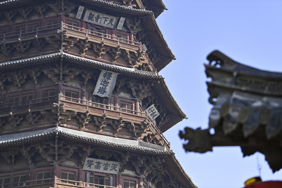 YINGXIAN, March. 20 (Xinhua) -- Sakyamuni Pagoda of Fogong Temple, well known as the Wooden Pagoda of Yingxian County, is located in Yingxian County, north China's Shanxi Province. The pagoda was built in 1056 with tenon-and-mortise work. The 67.31-meter-high building is the tallest and oldest wooden multi-story structure in the world, according to the United Nations Educational, Scientific and Cultural Organization.