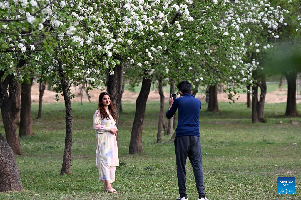 People enjoy the spring scenery in Islamabad, Pakistan, on March 19, 2025. (Photo by Daniyal Khan Jadoon/Xinhua)