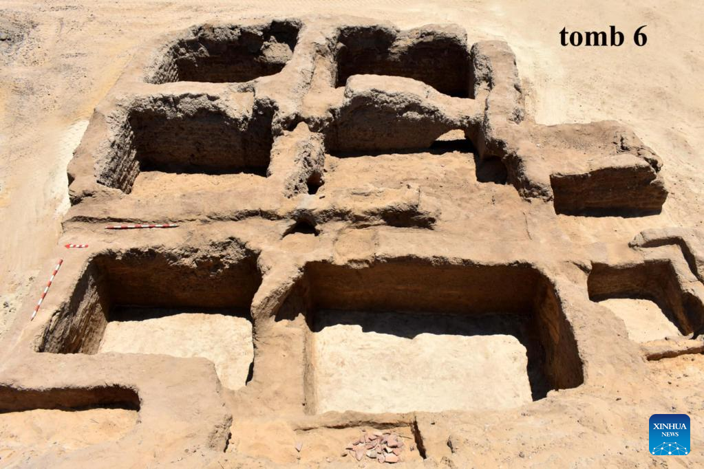 This undated photo shows a view of ancient tombs uncovered in the Maskhouta area of Ismailia Governorate, Egypt. An Egyptian archaeological mission has uncovered a tomb of a military leader from the reign of King Ramses III (around 1184 BC-1153 BC), the second king of the 20th Dynasty, the Egyptian Ministry of Tourism and Antiquities announced on Thursday. A group of mass and individual graves from the Greco-Roman Period (around 332 BC-640 AD) and Late Period of ancient Egypt (around 747 BC-332 BC) were also discovered, the ministry said in a statement, adding that the discovery was made during the mission's work in the Maskhouta area of Ismailia Governorate, northeast of Egypt. (Egyptian Ministry of Tourism and Antiquities/Handout via Xinhua)