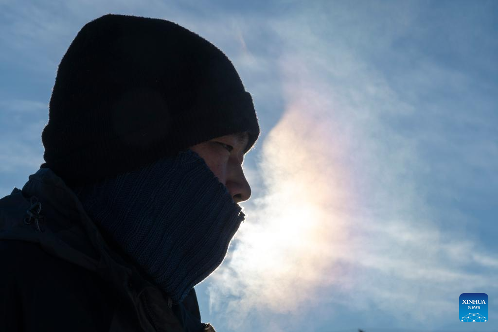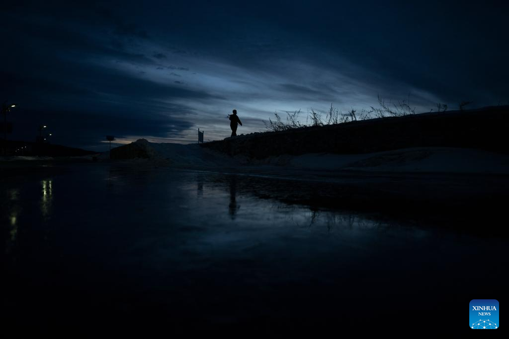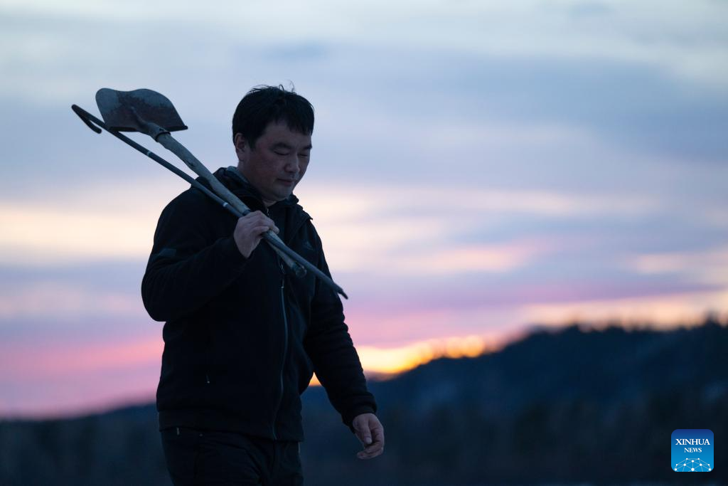 A staff member of the Luogu River hydrological station prepares for a monitoring operation in Mohe, northeast China's Heilongjiang Province, March 21, 2025. (Xinhua/Zhang Tao)