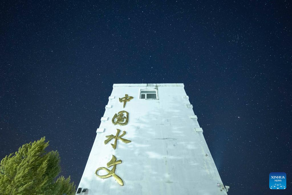 This photo taken on March 20, 2025 shows the Luogu River hydrological station in Mohe, northeast China's Heilongjiang Province.