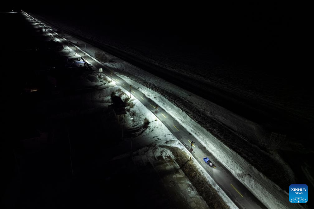This aerial drone photo taken on March 21, 2025 shows the Luogu River hydrological station in Mohe, northeast China's Heilongjiang Province, March 21, 2025. (Xinhua/Zhang Tao)