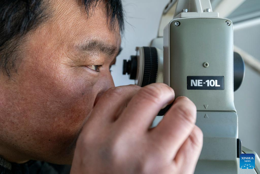 A staff member debugs a device at the Luogu River hydrological station in Mohe, northeast China's Heilongjiang Province, March 21, 2025. (Xinhua/Zhang Tao)