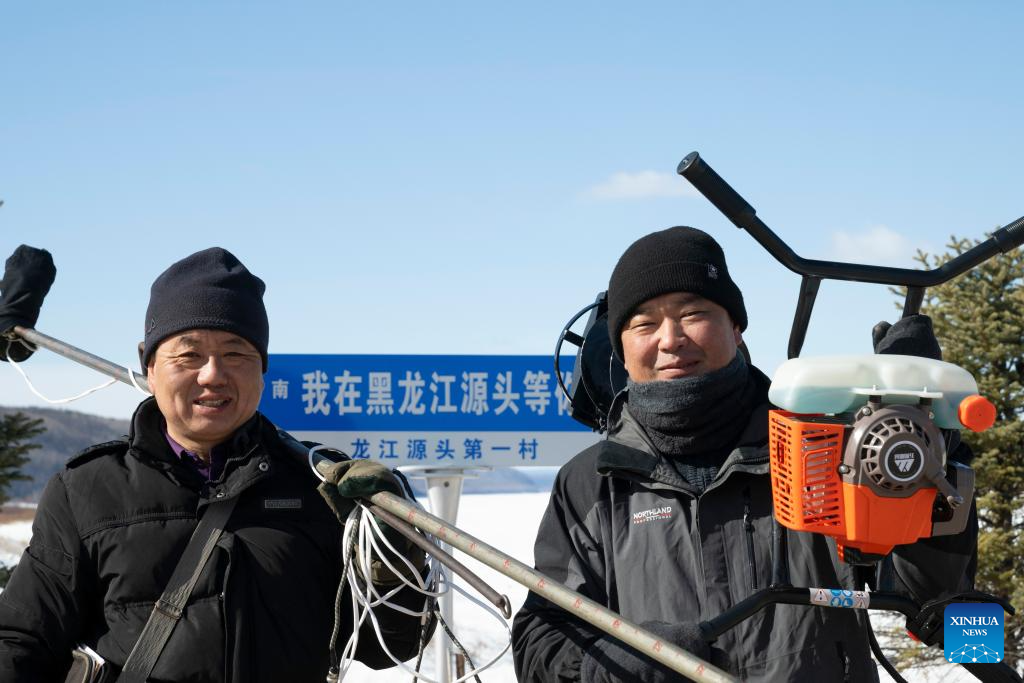 The Ergun River from China's Inner Mongolia Autonomous Region and the Shilka River from Russia merge here into the Heilongjiang River, the boundary river between China and Russia. The staff members here brave the coldness to collect hydrological data, ensuring the water safety of the river. (Xinhua/Zhang Tao)