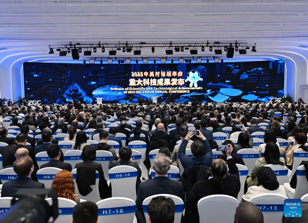 This photo taken on March 27, 2025 shows the release of scientific and technological achievements during the opening ceremony of the 2025 Zhongguancun Forum Annual Conference in Beijing, capital of China.