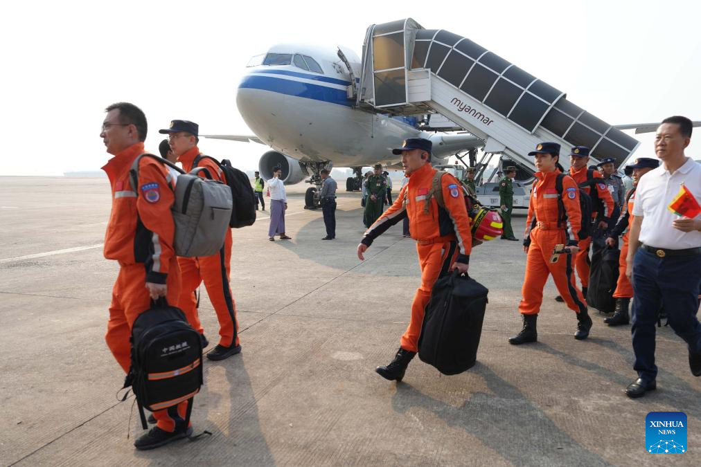 YANGON, March 29 (Xinhua) -- A Chinese rescue team arrived at Yangon International Airport in Myanmar on Saturday afternoon to assist in disaster relief efforts following a devastating earthquake.