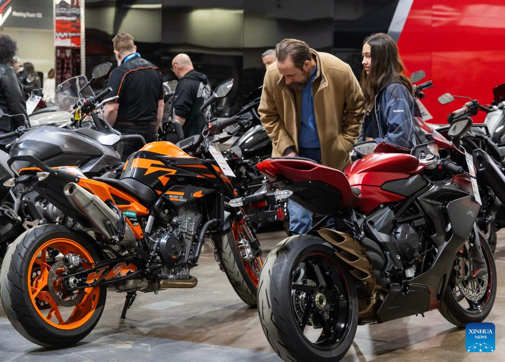 People visit the 2025 Spring Toronto Motorcycle and Powersports Supershow in Mississauga, the Greater Toronto Area, Canada, on March 30, 2025. Featuring vintage motorcycles, custom motorcycles and more, the annual two-day show was held here from March 29 to 30. (Photo by Zou Zheng/Xinhua)