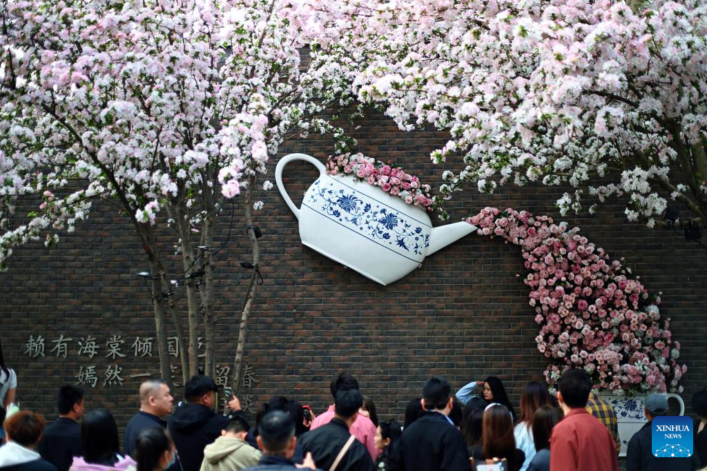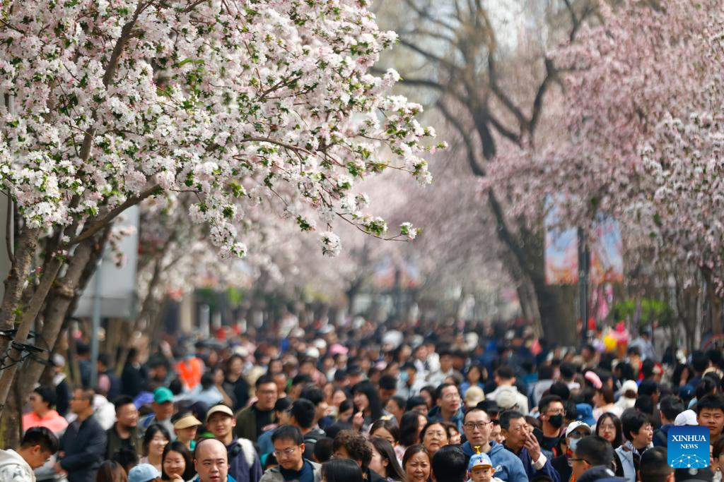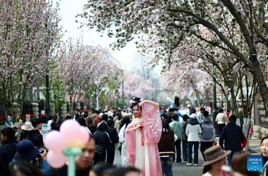 The third edition of a crabapple blossom festival kicked off on Thursday at Wudadao historical urban area, a popular tourist destination in the downtown area of Tianjin. The festival, which stays on until April 13, features more than 100 art and culture performances to enable "immersive" experience for the visitors. (Xinhua/Zhao Zishuo)