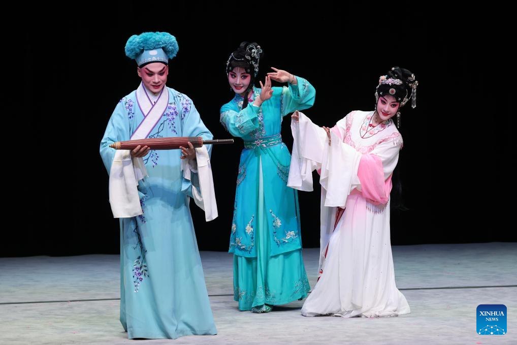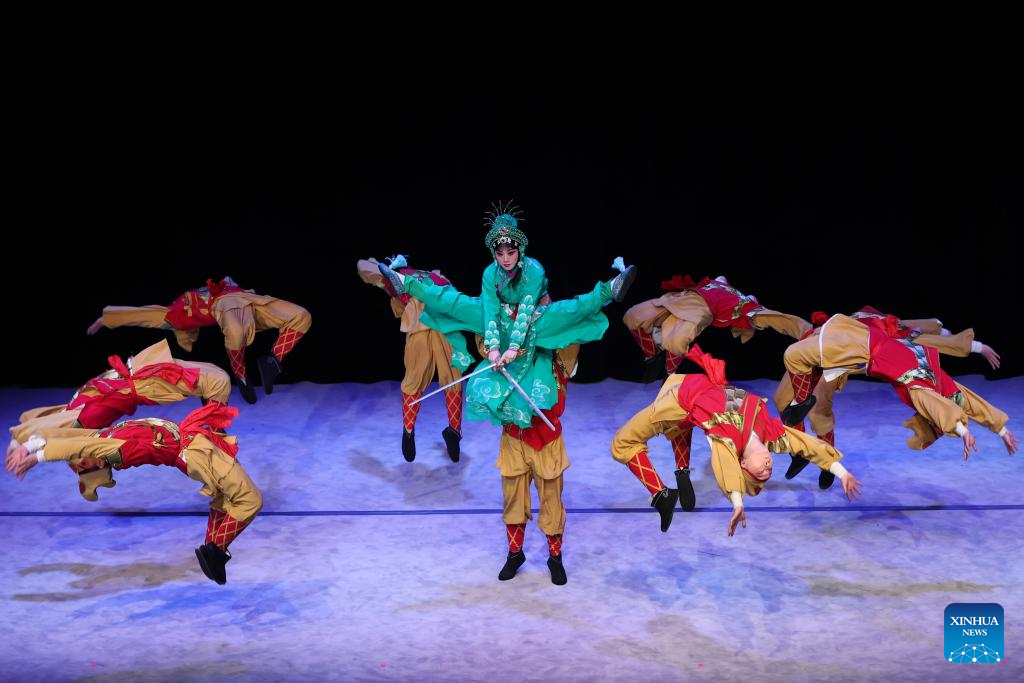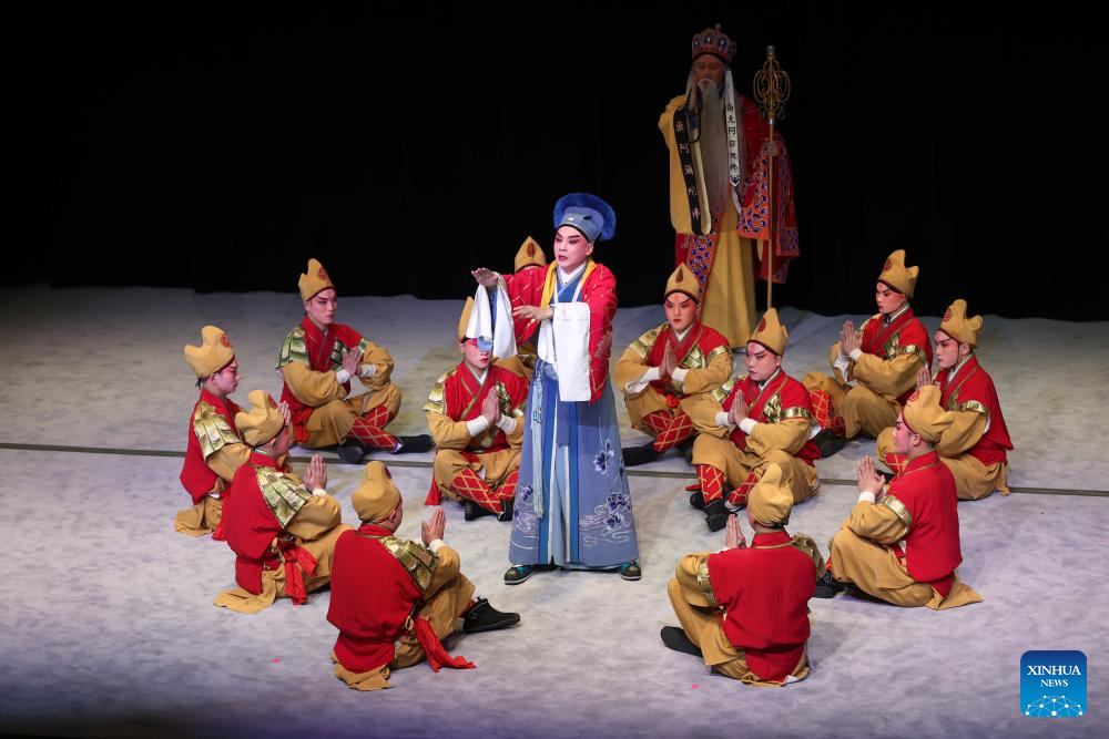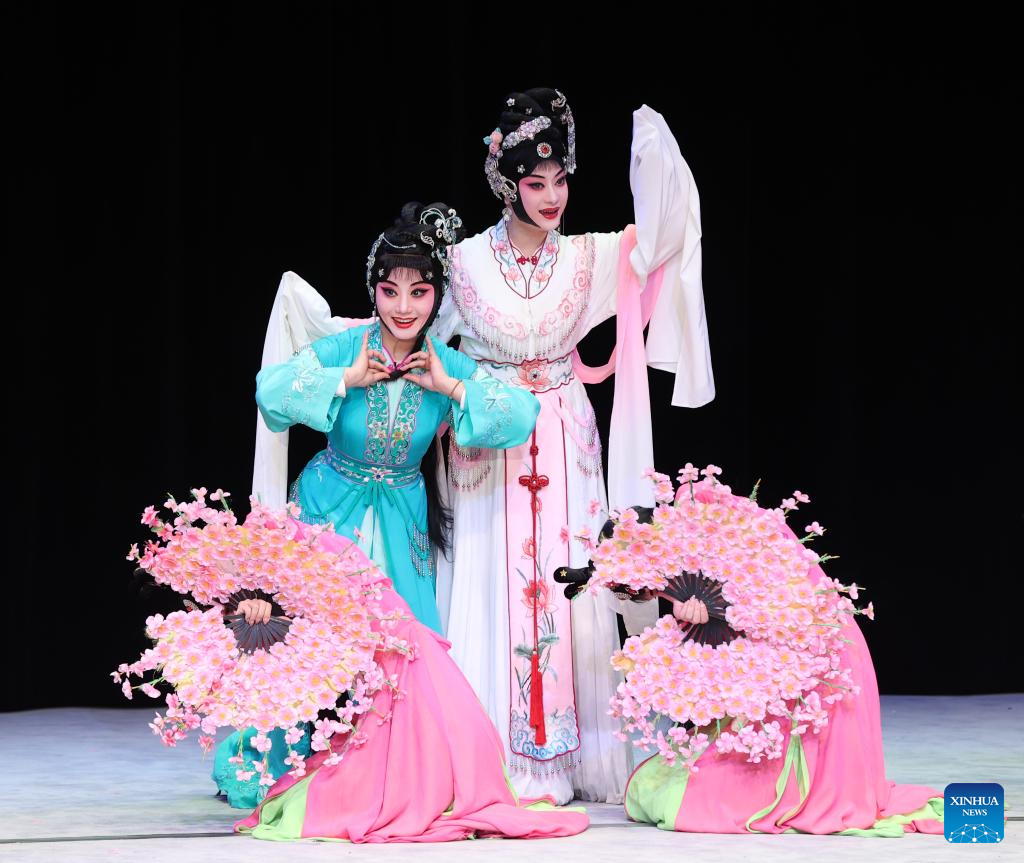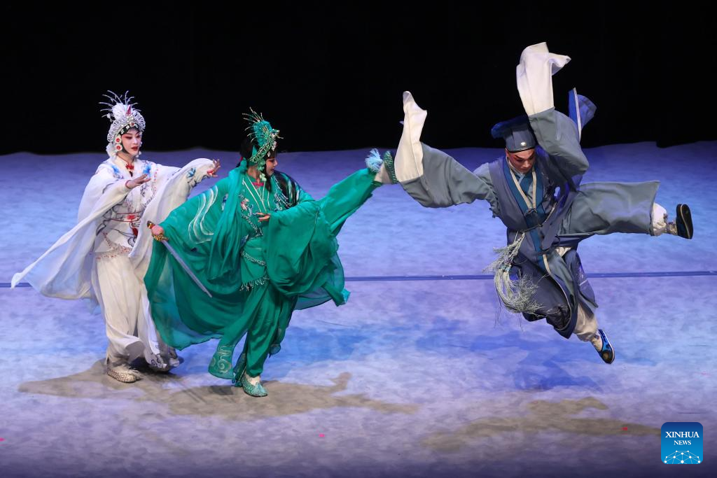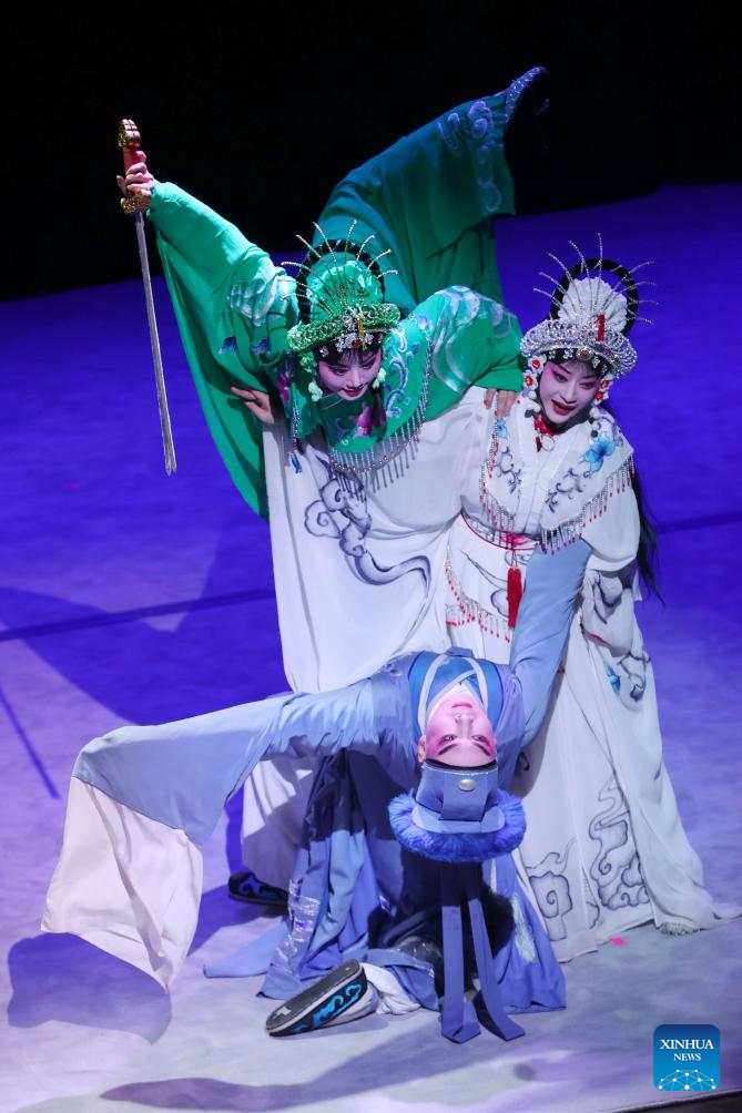 Artists perform the traditional Chinese Wu Opera "The Legend of the White Snake" in Vienna, Austria, April 5, 2025. The Chinese Opera Season 2025 opened here on Saturday night with a performance of the traditional Wu Opera "The Legend of the White Snake", marking the beginning of a series of Chinese operatic performances in the Austrian capital. (Xinhua/Zhao Dingzhe)