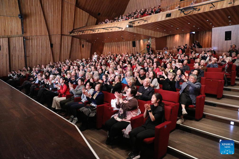 Audience applaud during the performance of the traditional Chinese Wu Opera "The Legend of the White Snake" in Vienna, Austria, April 5, 2025. The Chinese Opera Season 2025 opened here on Saturday night with a performance of the traditional Wu Opera "The Legend of the White Snake", marking the beginning of a series of Chinese operatic performances in the Austrian capital. (Xinhua/Zhao Dingzhe)
