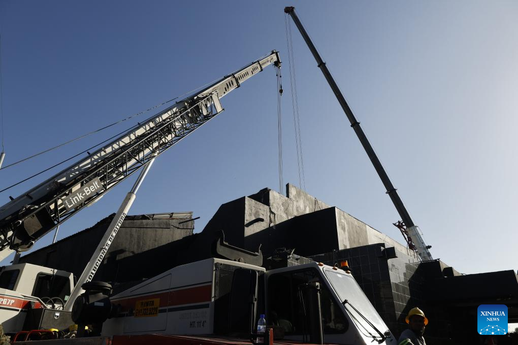 Photo taken on April 8, 2025 shows the site of a nightclub roof collapse in Santo Domingo, the Dominican Republic. (Str/Xinhua)