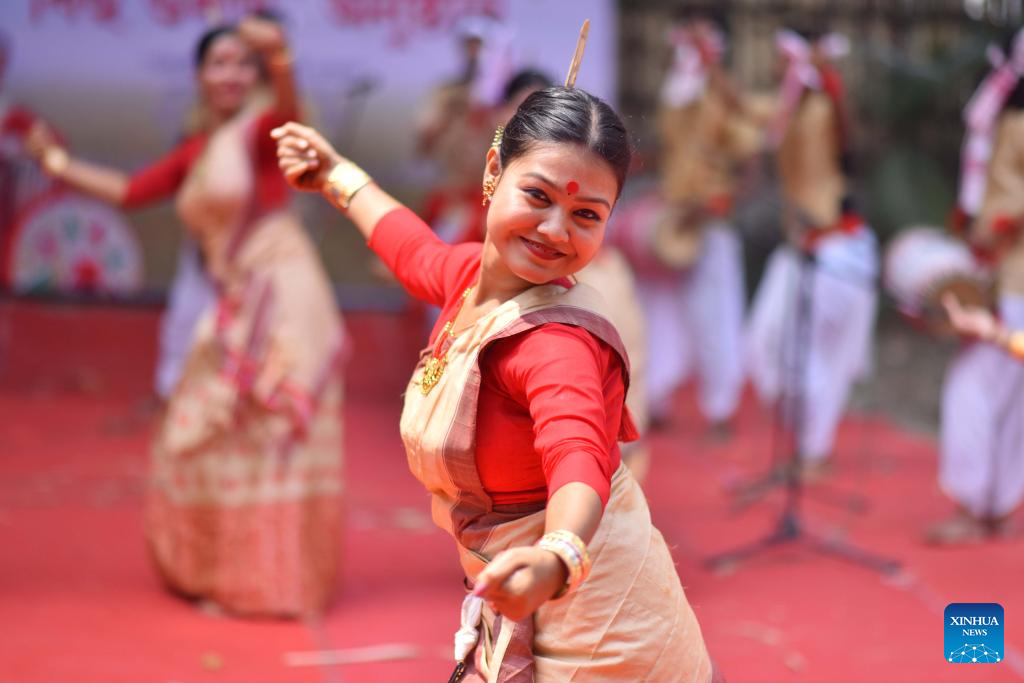 The festival welcomes the Assamese New Year and the arrival of spring. (Str/Xinhua)