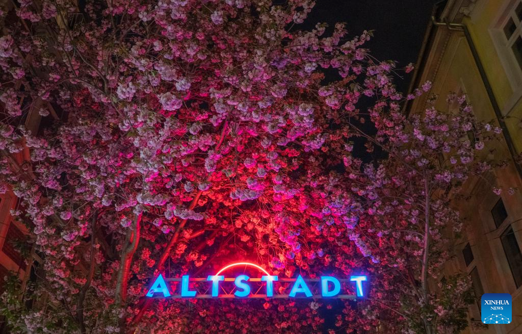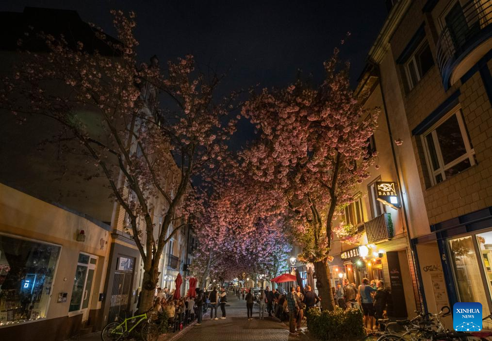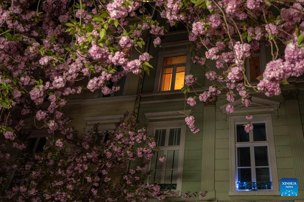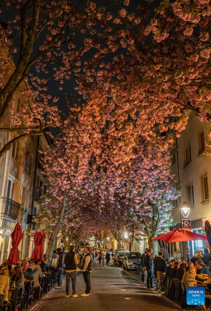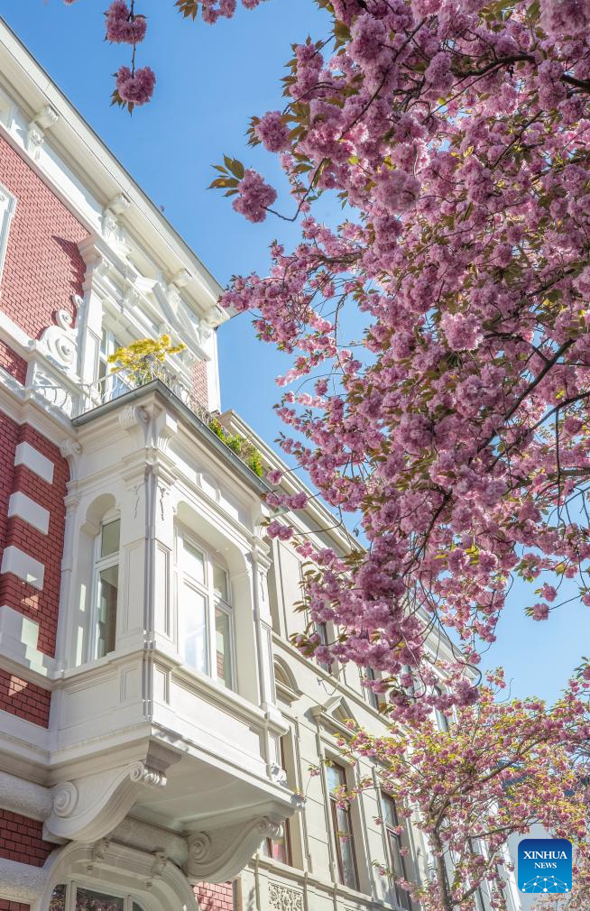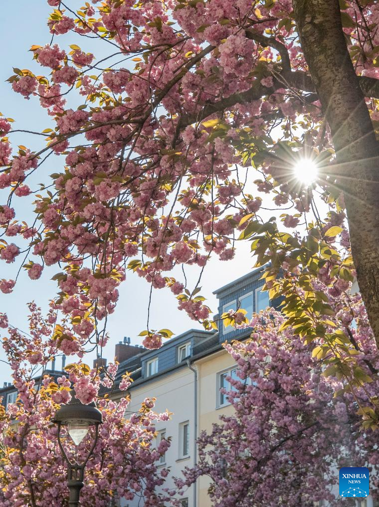 Blooming cherry blossoms are seen in Bonn, Germany, April 12, 2025. (Xinhua/Zhang Fan)
