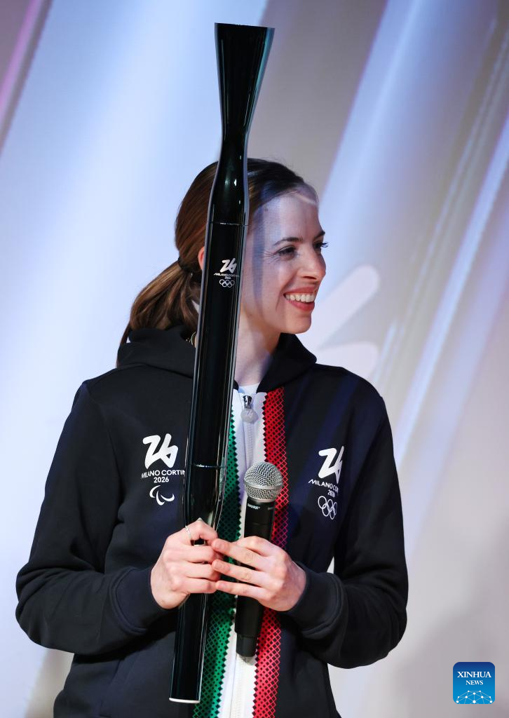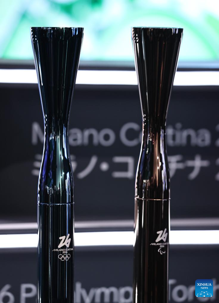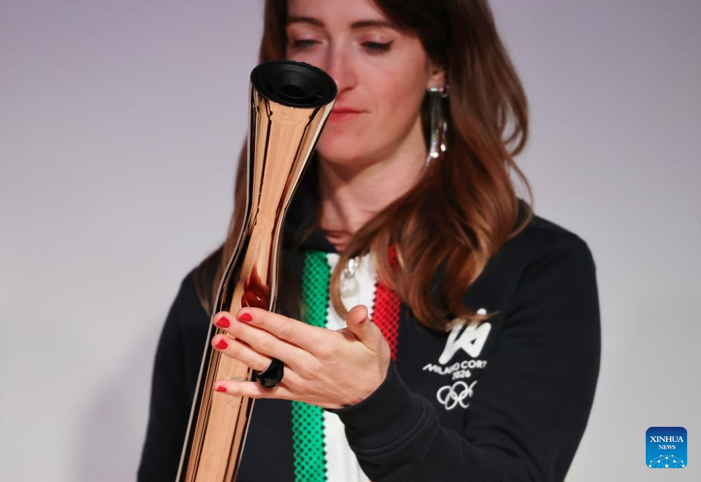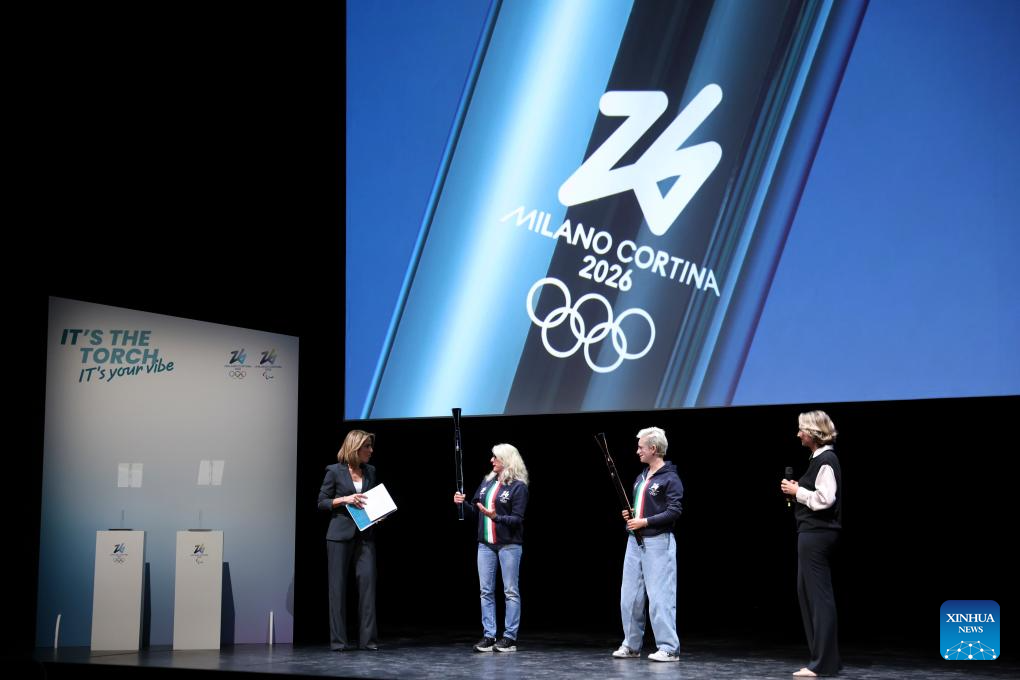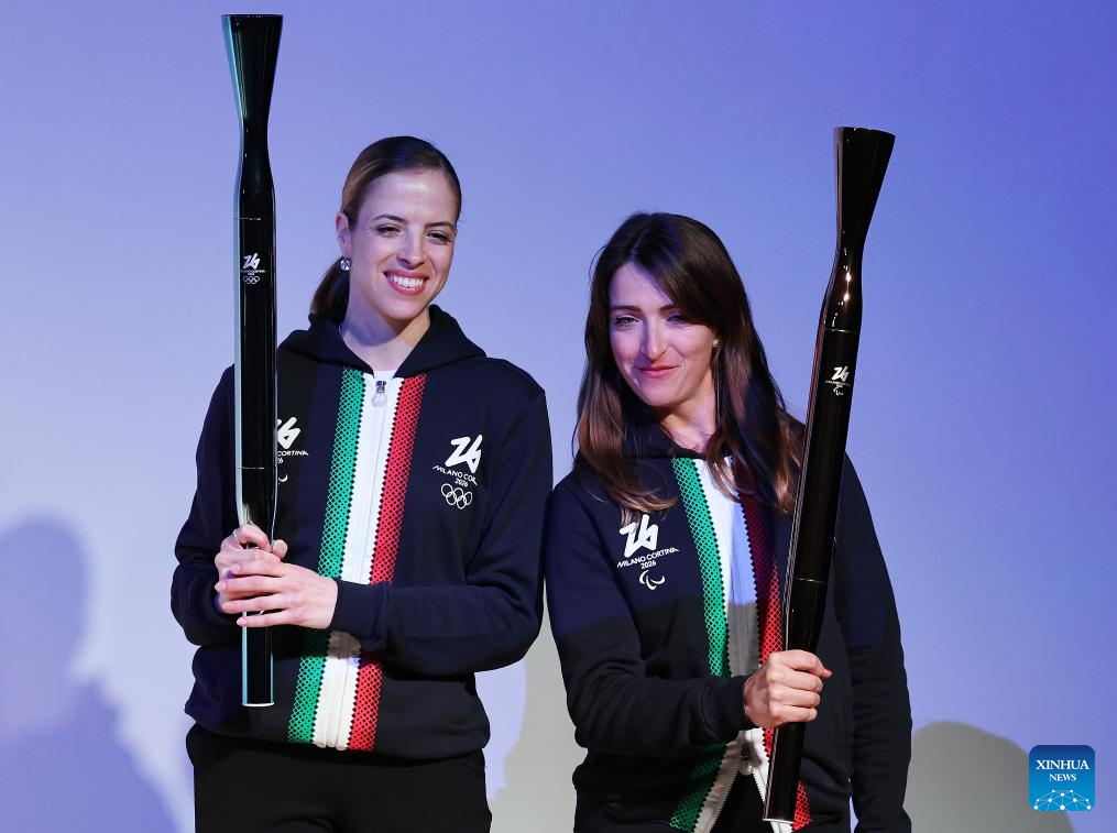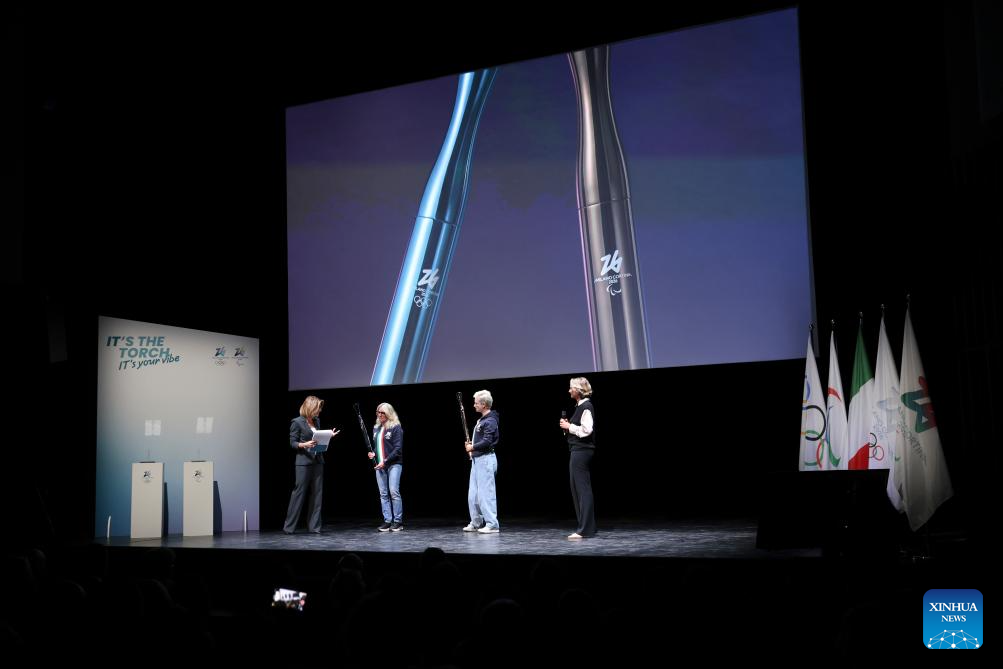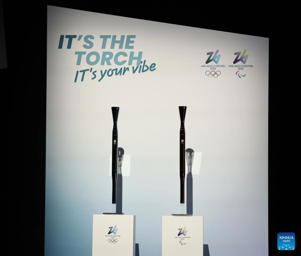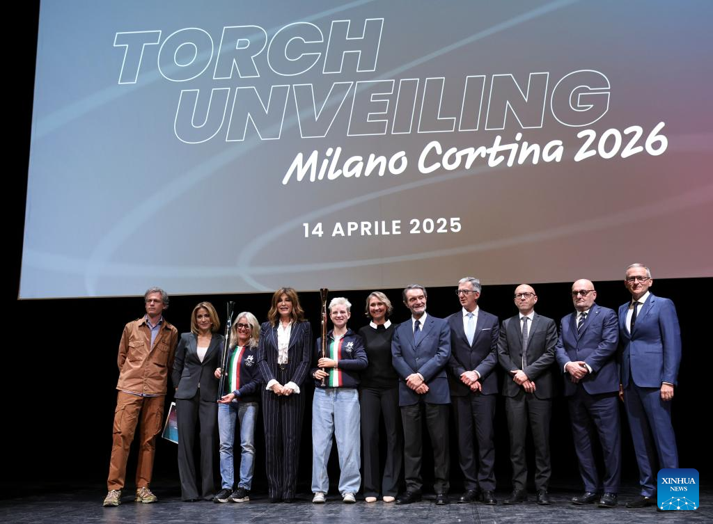 MILAN, Italy, April 14 (Xinhua) -- The organizers of the Milano Cortina 2026 Olympic and Paralympic Winter Games on Monday unveiled the official torches that will carry the flame of the Games, highlighting themes of Italian design, technological innovation and environmental sustainability.