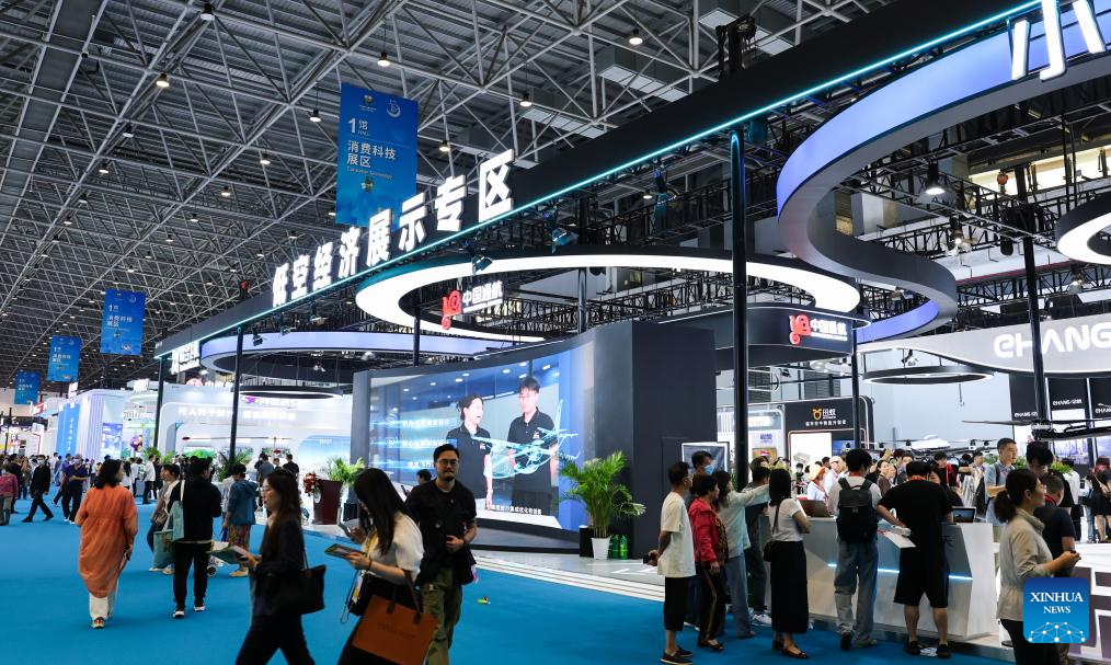People visit the low-altitude economy zone at the 5th China International Consumer Products Expo (CICPE) in Haikou, south China's Hainan Province, April 15, 2025.