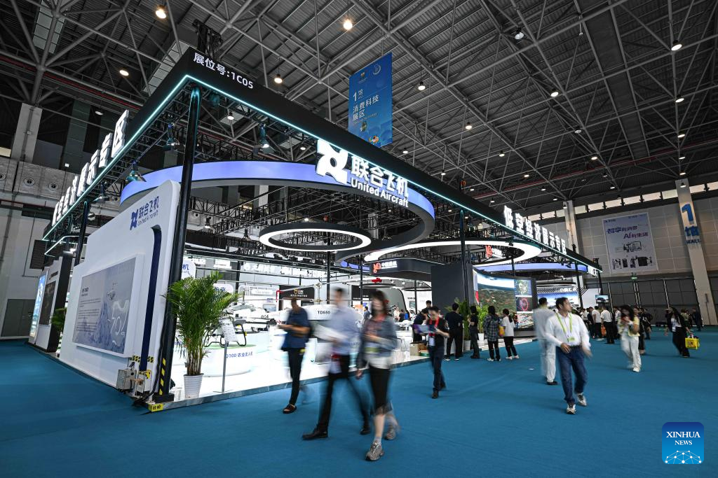 People visit the booth of United Aircraft at the 5th China International Consumer Products Expo (CICPE) in Haikou, south China's Hainan Province, April 15, 2025.