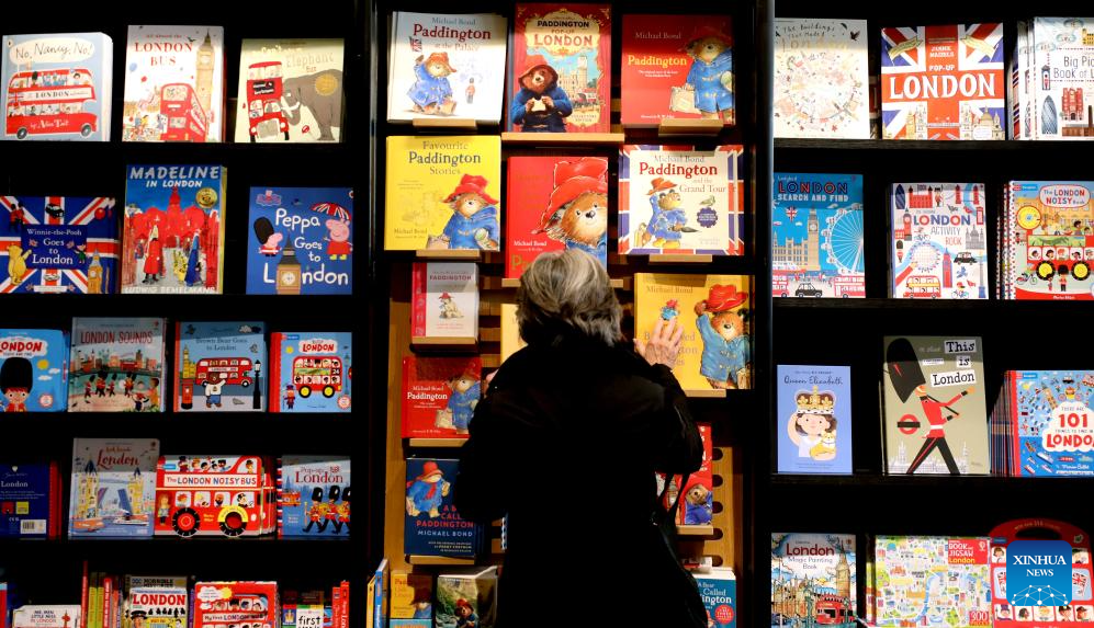 People visit Waterstones' flagship Piccadilly bookshop in London, Britain, April 17, 2025. Britain's largest book chain, Waterstones, attracts a large number of readers to experience the charm of paper books. (Xinhua/Li Ying)