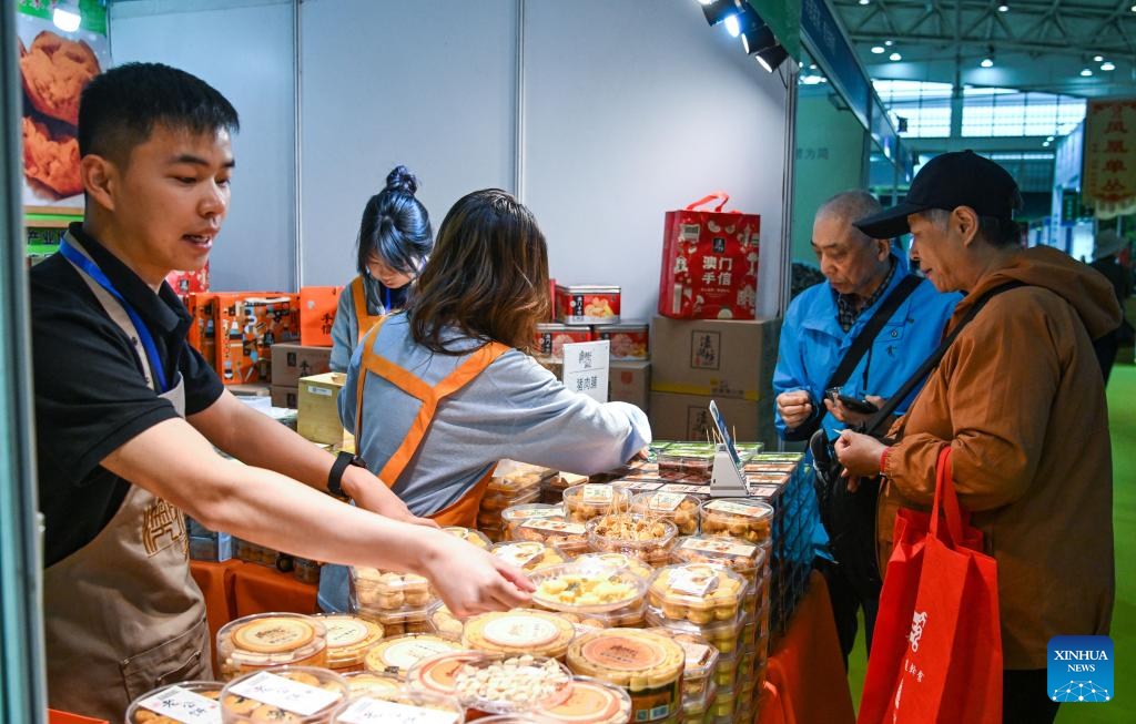 Visitors choose tea pastries during the 18th Beijing International Tea and Tea Ceremony Exhibition at the China Agricultural Exhibition Center in Beijing, capital of China, April 18, 2025. The four-day Beijing International Tea and Tea Ceremony Exhibition kicked off in Beijing on Friday, attracting exhibitors from more than 700 tea-related enterprises. (Xinhua/Chen Yehua)