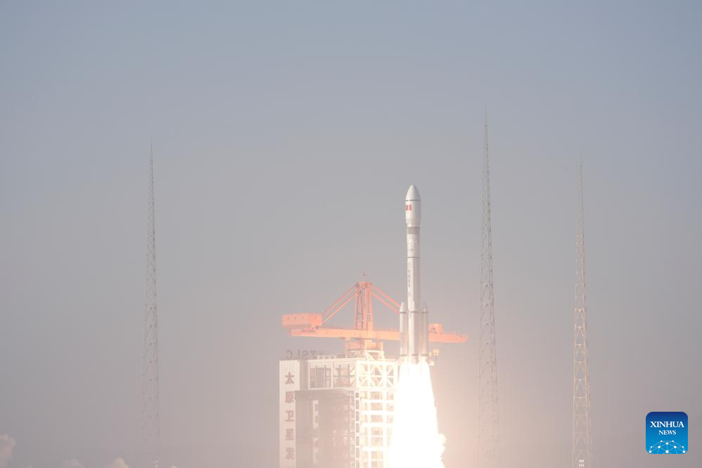 A modified Long March-6 carrier rocket carrying six Shiyan-27 satellites blasts off from the Taiyuan Satellite Launch Center in north China's Shanxi Province, April 19, 2025. The six Shiyan-27 satellites were launched at 6:51 a.m. (Beijing Time) and entered the preset orbits successfully. (Photo by Wang Zenghe/Xinhua)