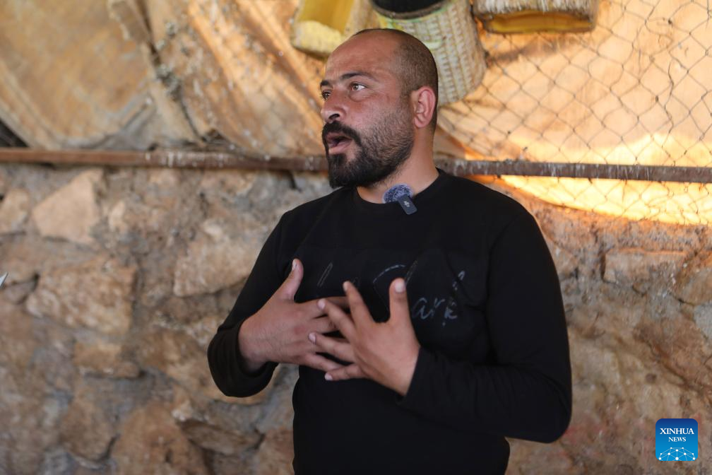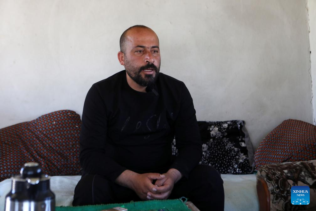 Palestinian filmmaker Hamdan Ballal, co-director of the Oscar-winning documentary "No Other Land," speaks during an interview at his house in the village of Susya in Masafer Yatta, south of Hebron, on April 19, 2025. Palestinians' bond with their land runs deep and they will never leave home even at a time of hardship and increasing Israeli settler violence, said Hamdan Ballal, co-director of the Oscar-winning documentary "No Other Land." "No Other Land" chronicles the violence facing Palestinian villagers and Israeli demolitions of Palestinian homes in the area of Masafer Yatta, southern West Bank. It has notched up festival awards and the Oscar for best documentary feature this year. (Photo by Mamoun Wazwaz/Xinhua)