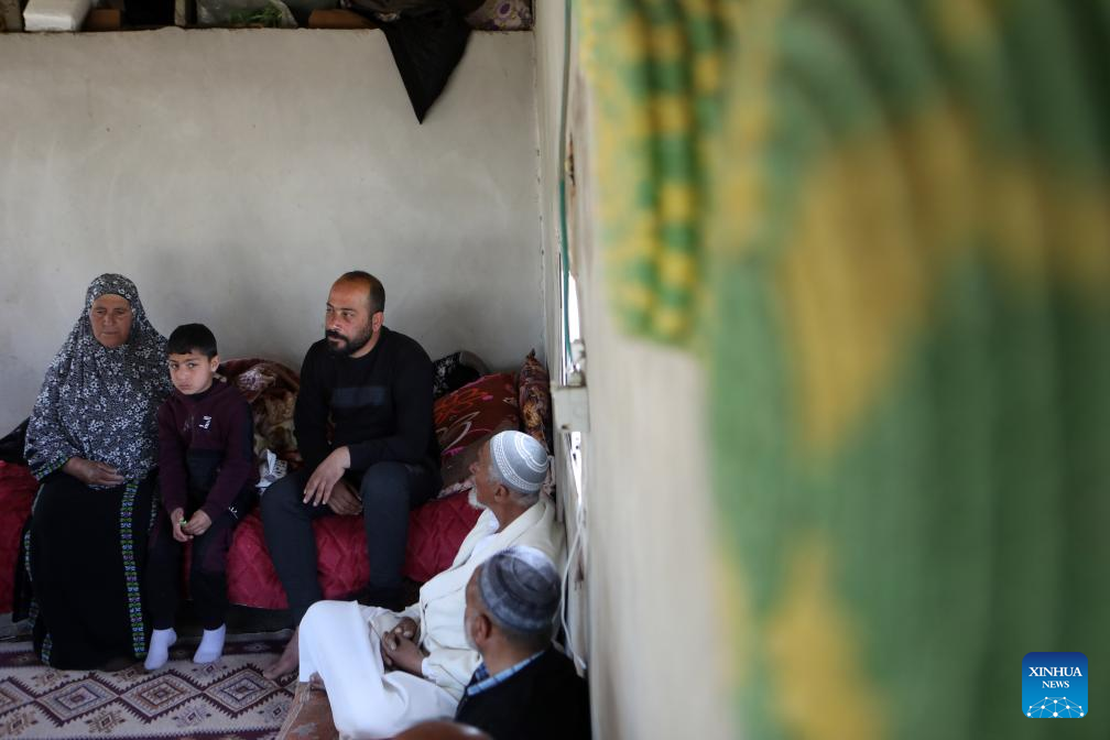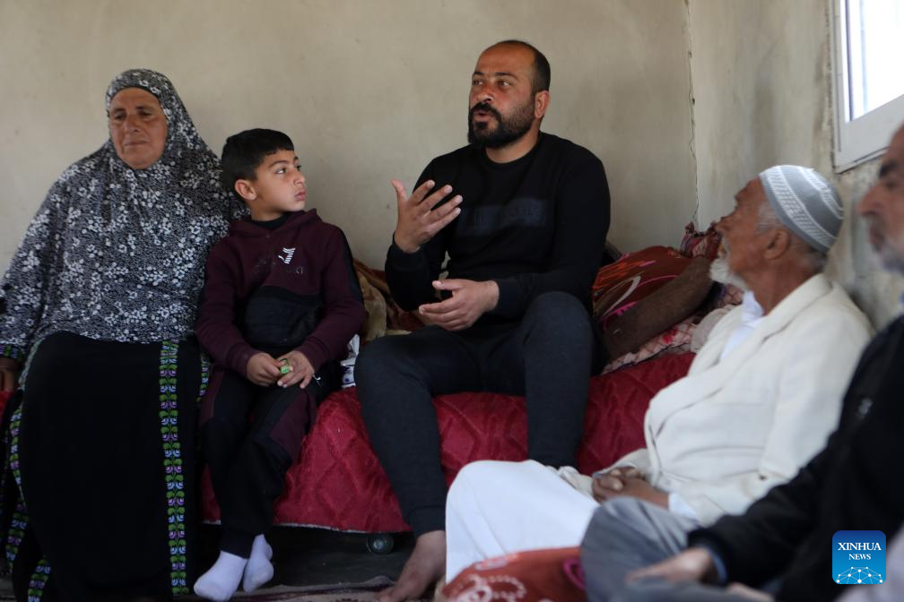 Palestinian filmmaker Hamdan Ballal (C), co-director of the Oscar-winning documentary "No Other Land," is seen at his house in the village of Susya in Masafer Yatta, south of Hebron, on March 26, 2025. Palestinians' bond with their land runs deep and they will never leave home even at a time of hardship and increasing Israeli settler violence, said Hamdan Ballal, co-director of the Oscar-winning documentary "No Other Land." "No Other Land" chronicles the violence facing Palestinian villagers and Israeli demolitions of Palestinian homes in the area of Masafer Yatta, southern West Bank. It has notched up festival awards and the Oscar for best documentary feature this year. (Photo by Mamoun Wazwaz/Xinhua)