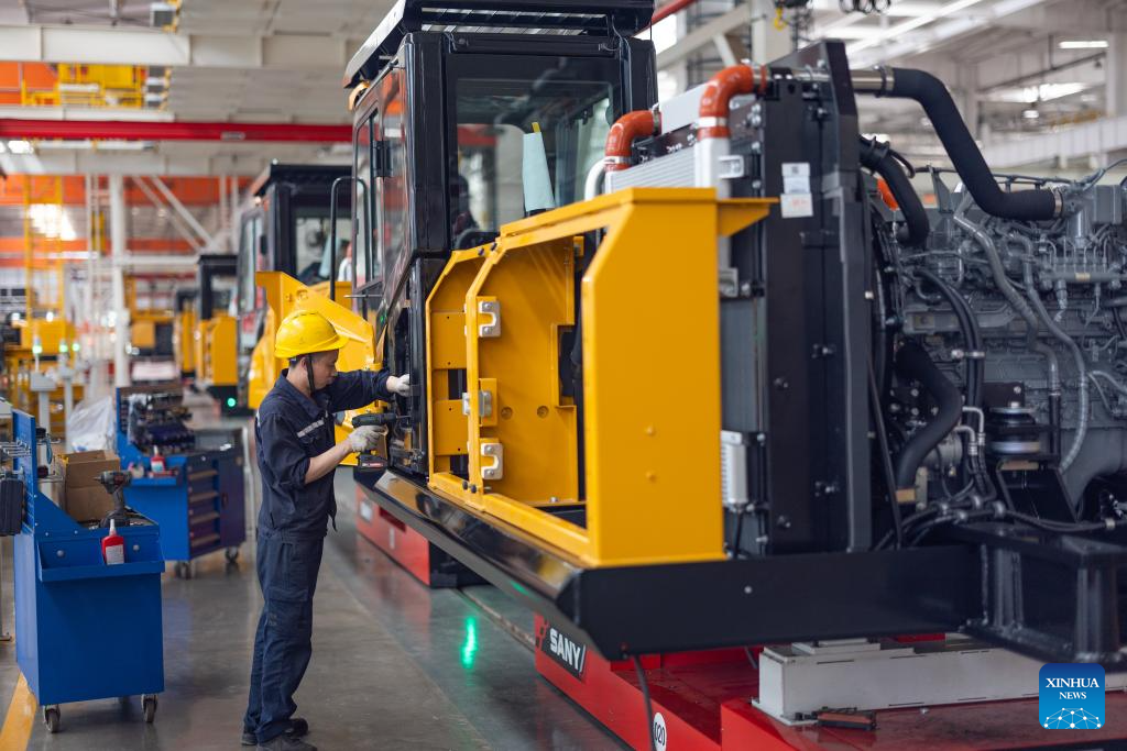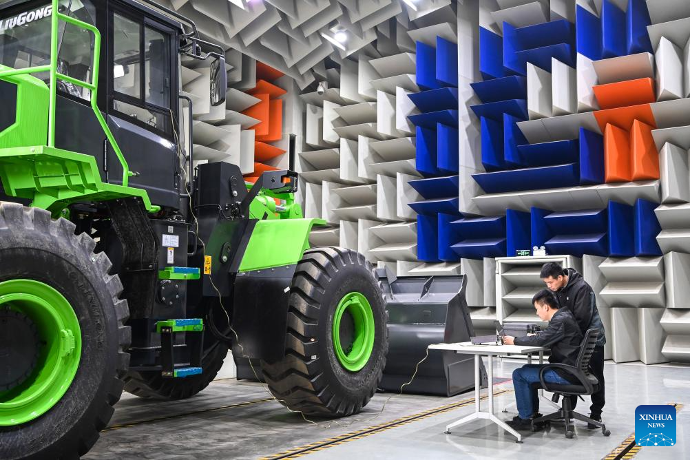 A staff member conducts test on a loader at an equipment manufacturing company in Liuzhou, south China's Guangxi Zhuang Autonomous Region, March 11, 2025. (Xinhua/Cao Yiming)