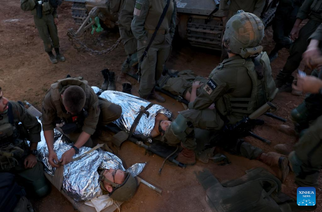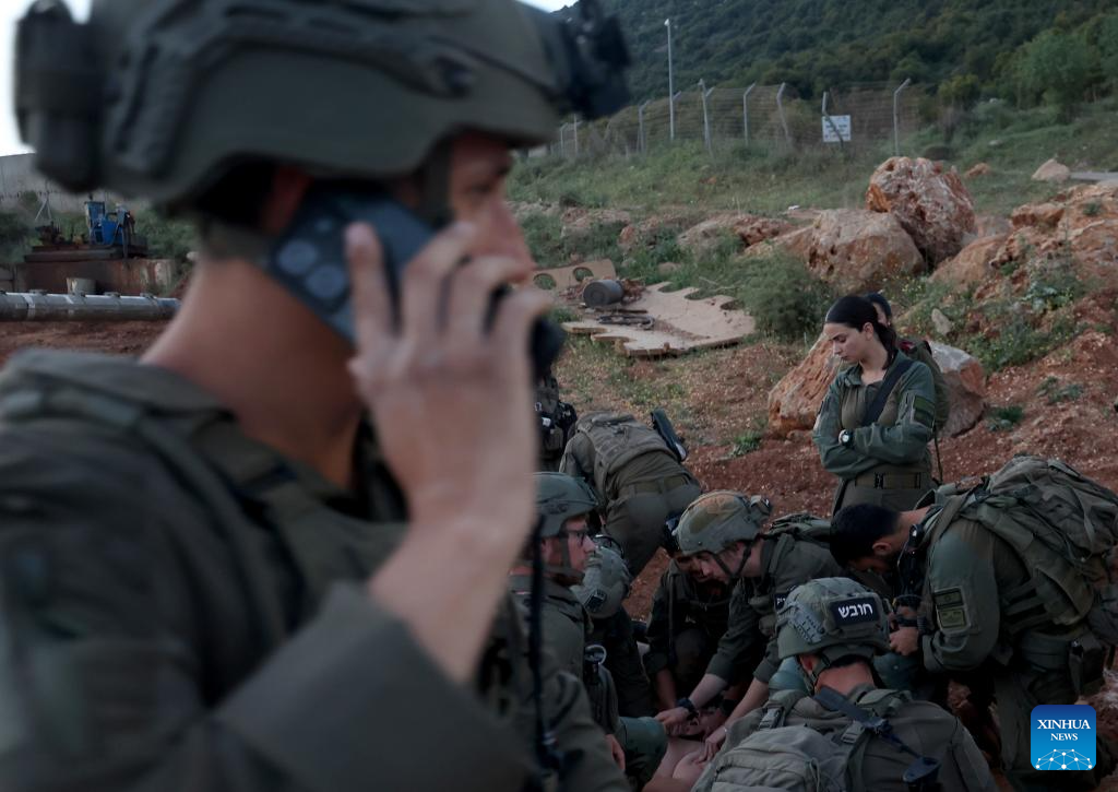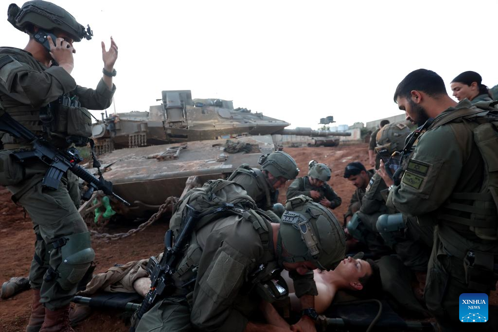 Israeli soldiers take part in a rescue drill near the northern Israeli city of Kiryat Shmona, close to the border with Lebanon, on April 21, 2025. (Photo by Gil Cohen Magen/Xinhua)