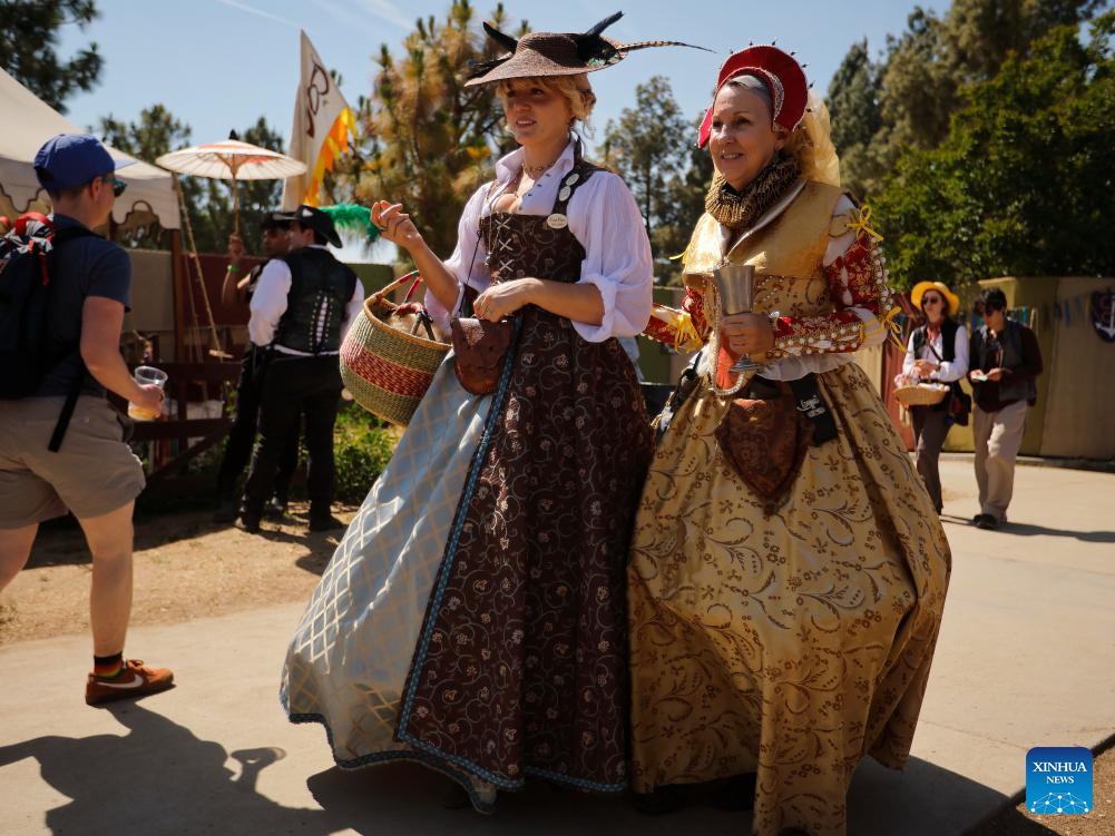 People in costumes participate in the Renaissance Pleasure Faire in Irwindale, Los Angeles County, the United States, on April 20, 2025. (Photo by Qiu Chen/Xinhua)