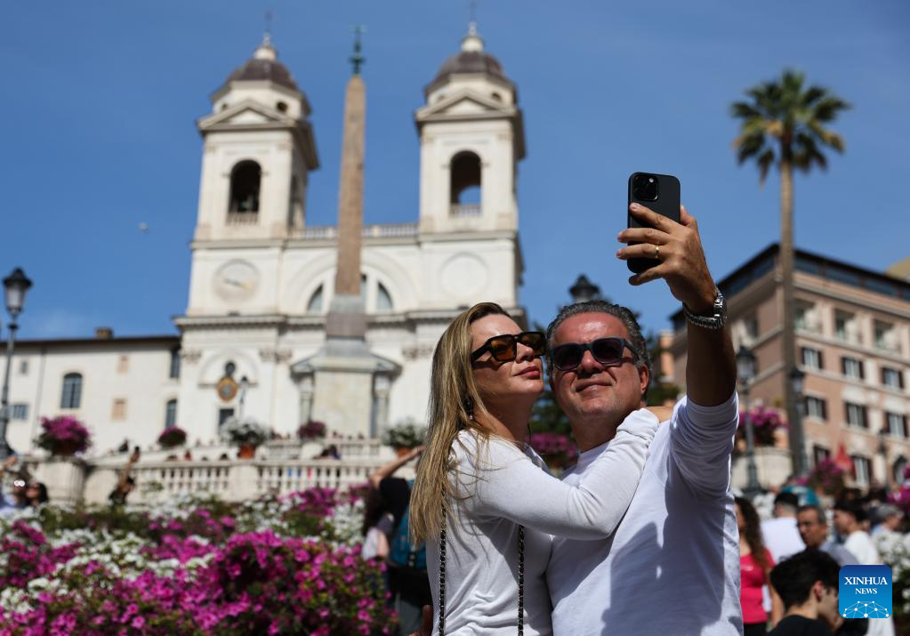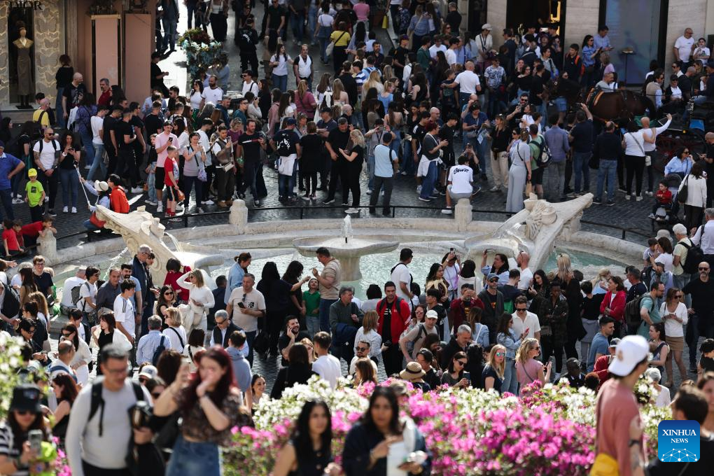 People visit Piazza di Spagna in Rome, Italy, during the Easter holiday on April 21, 2025. (Xinhua/Li Jing)