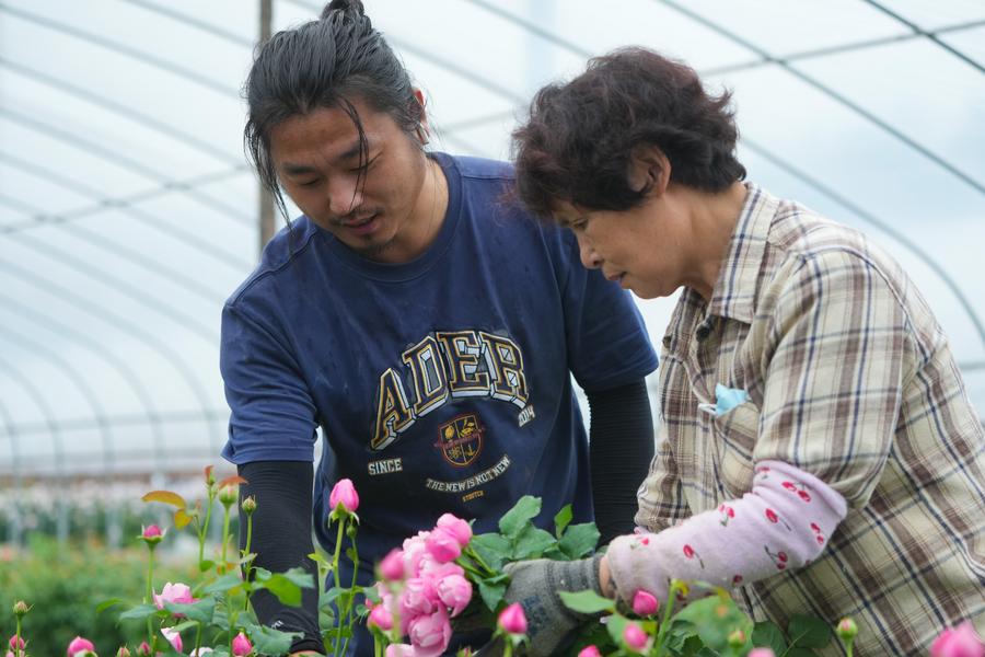 Zhan and Liu now operate two production bases covering a planting area of over 40 mu (about 2.67 hectares), where they grow more than 400 varieties of Rosa Chinensis. They sell fresh-cut flowers through e-commerce platforms and also open the planting base for sightseeing and flower-picking. During flower seasons in spring and autumn, the garden attracts an average of 500 daily visitors, creating annual sales exceeding 2 million yuan (about 273,000 U.S. dollars). The planting base also creates job opportunities for local farmers.