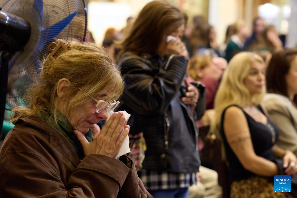 People cry during a mass in Metropolitan Cathedral, where Pope Francis, as Archbishop Jorge Bergoglio, used to perform mass, in Buenos Aires, Argentina, on April 21, 2025. Pope Francis, the 266th pontiff of the Roman Catholic Church, died Monday at the age of 88, said the Vatican in a statement.