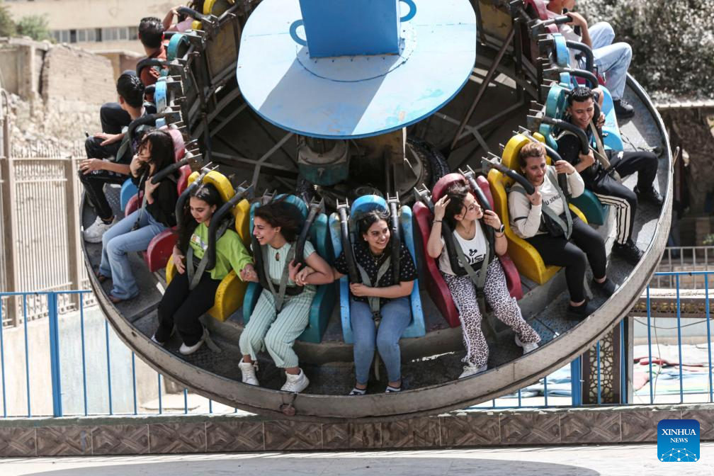 People take amusement rides during the Sham el-Nessim at a park in Cairo, Egypt, April 21, 2025. Egyptians celebrated on Monday the Sham el-Nessim, a traditional Egyptian festival marking the beginning of spring. (Xinhua/Ahmed Gomaa)