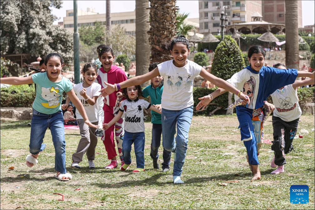 Children spend their time during the Sham el-Nessim at a park in Cairo, Egypt, April 21, 2025. Egyptians celebrated on Monday the Sham el-Nessim, a traditional Egyptian festival marking the beginning of spring. (Xinhua/Ahmed Gomaa)