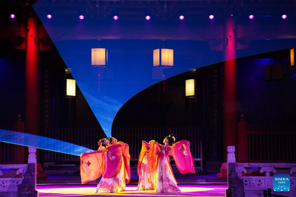 Visitors watch an immersive live performance at the Huizhou ancient town in Shexian County of Huangshan City, east China's Anhui Province, March 23, 2025. Located at the junction of Huangshan Mountains and Xin'an River, Shexian County of east China's Anhui Province has carried the essence of Hui-style culture and architecture. Huizhou Ancient City, lying at the heart of Shexian, is one of the best-preserved ancient towns in China. Its network of ancient streets, alleys, and bridges is complemented by traditional residences, ancestral halls, and memorial archways.