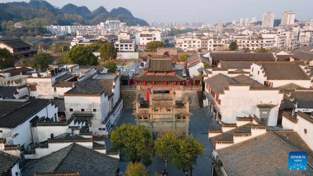 An aerial drone photo shows the Huizhou ancient town in Shexian County of Huangshan City, east China's Anhui Province, March 26, 2025. Located at the junction of Huangshan Mountains and Xin'an River, Shexian County of east China's Anhui Province has carried the essence of Hui-style culture and architecture. Huizhou Ancient City, lying at the heart of Shexian, is one of the best-preserved ancient towns in China. Its network of ancient streets, alleys, and bridges is complemented by traditional residences, ancestral halls, and memorial archways.