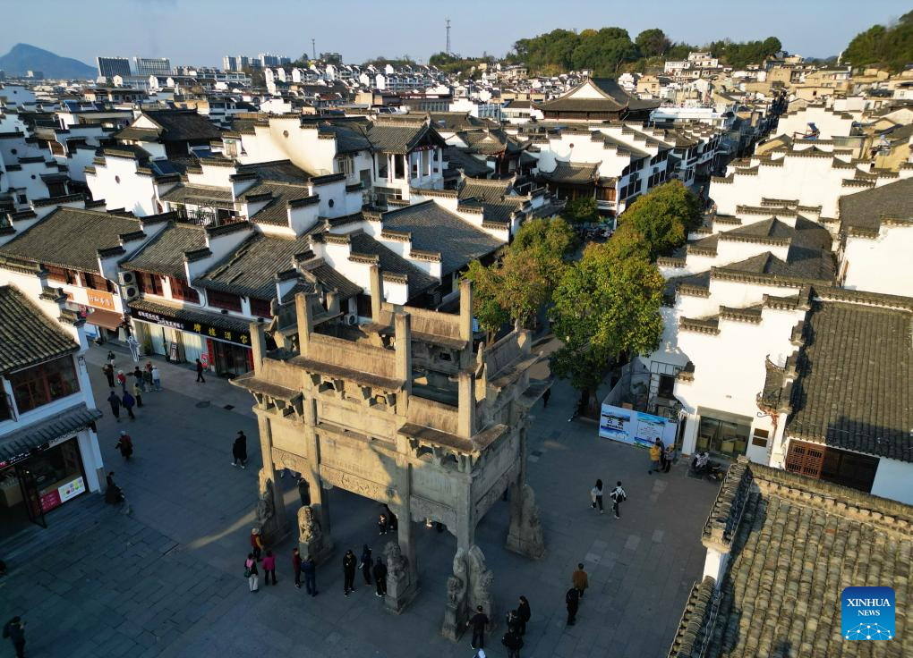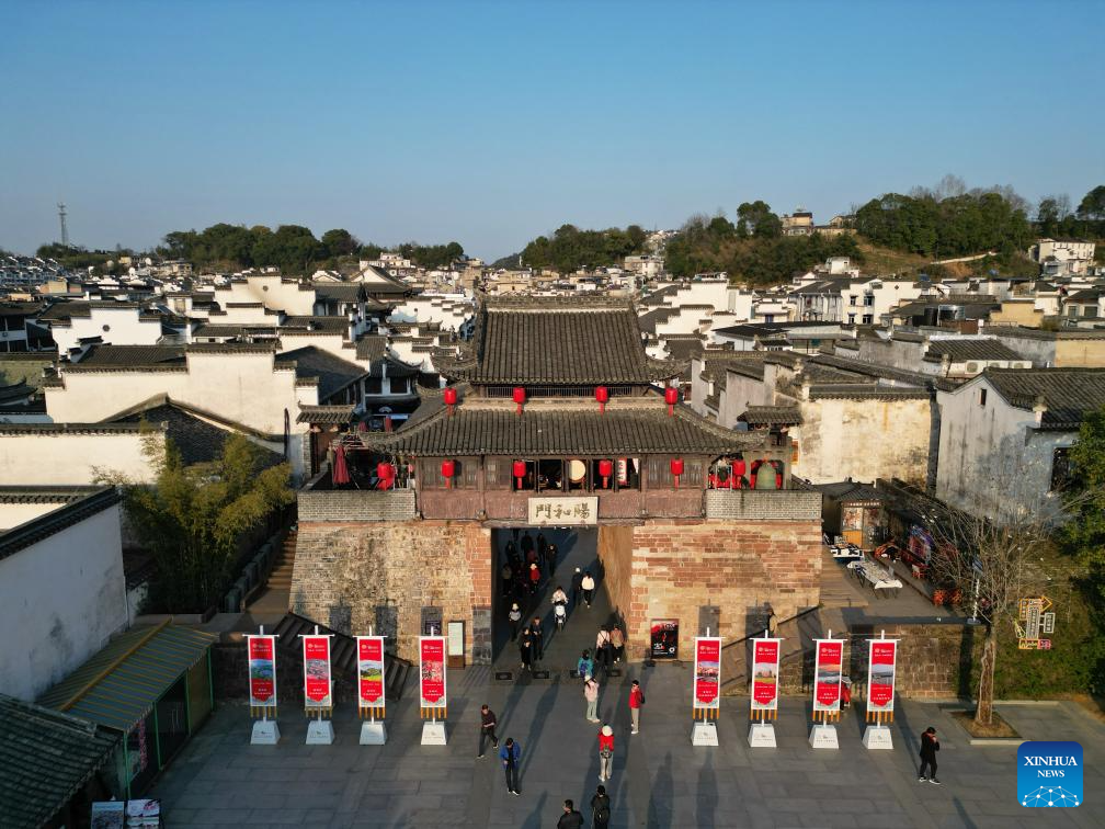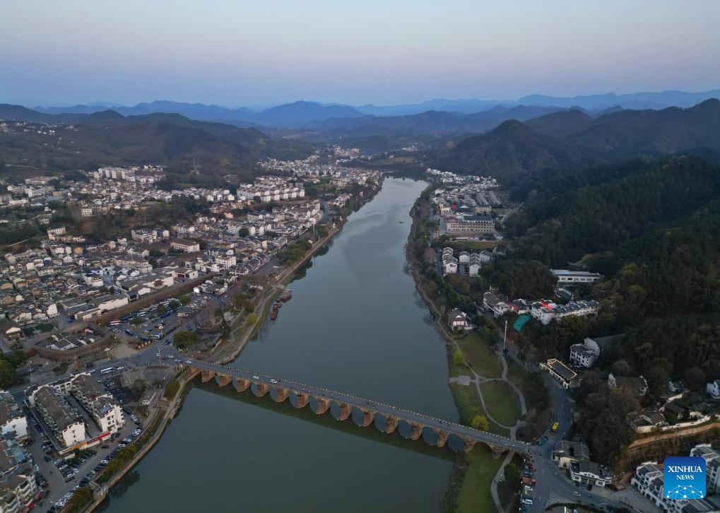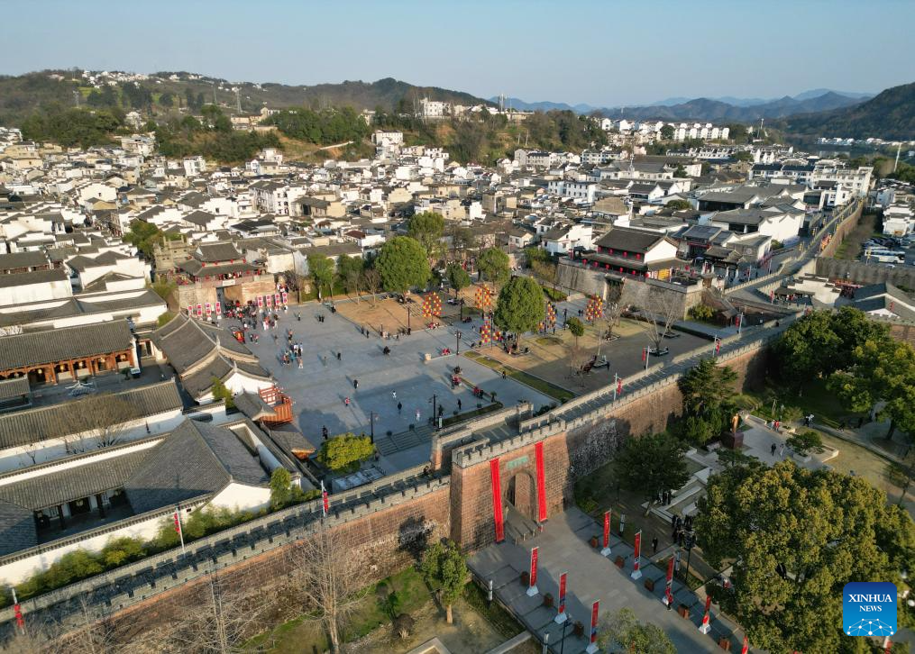 An aerial drone photo taken on March 19, 2025 shows the Yanghe Gate of Huizhou ancient town in Shexian County, east China's Anhui Province. Bamberg in Germany and Shexian in China show how towns with a remarkable history can thrive today.
