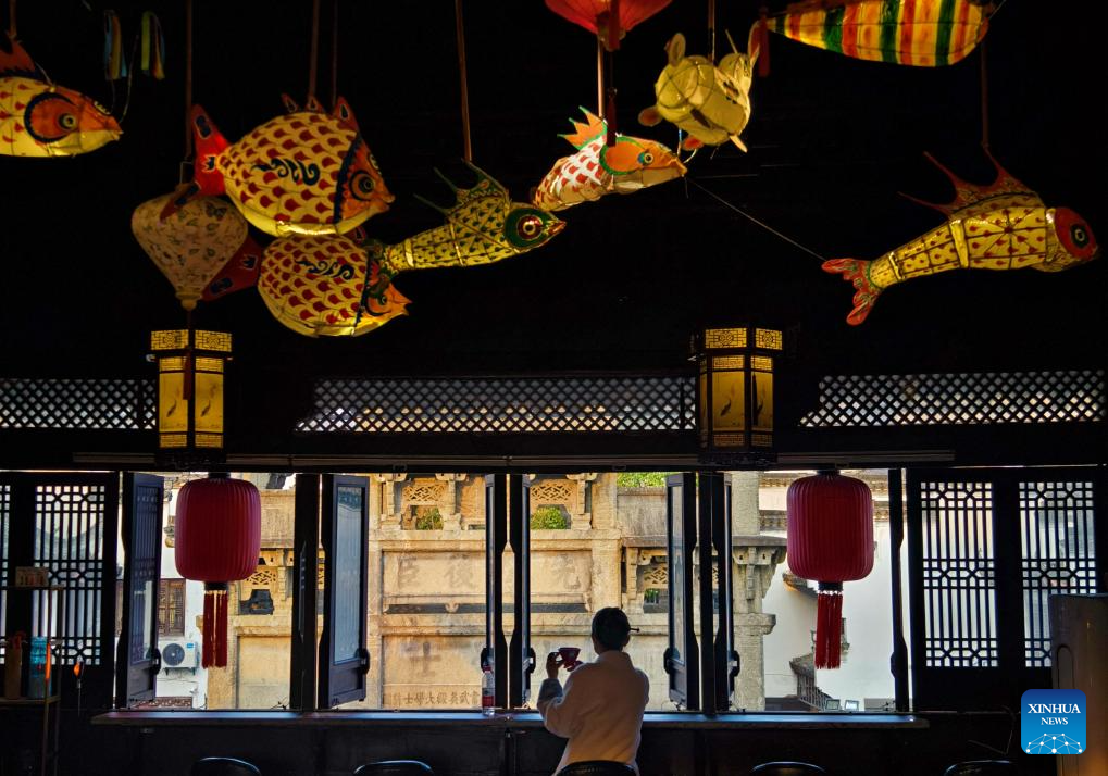 This photo taken on March 19, 2025 shows fish-shaped lanterns on the ancient walls of Huizhou ancient town in Shexian County, east China's Anhui Province. Bamberg in Germany and Shexian in China show how towns with a remarkable history can thrive today.