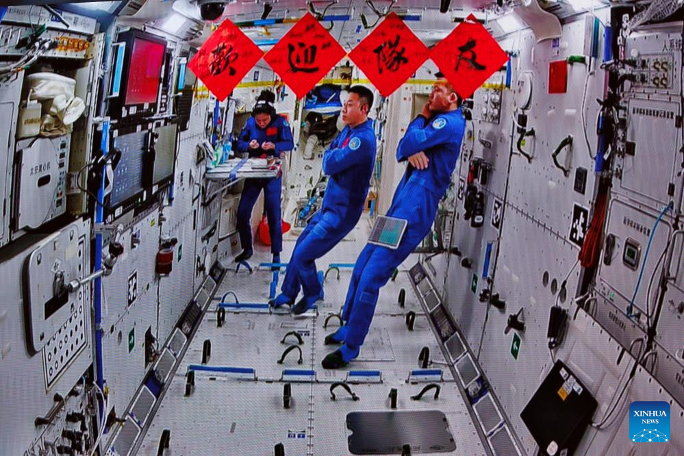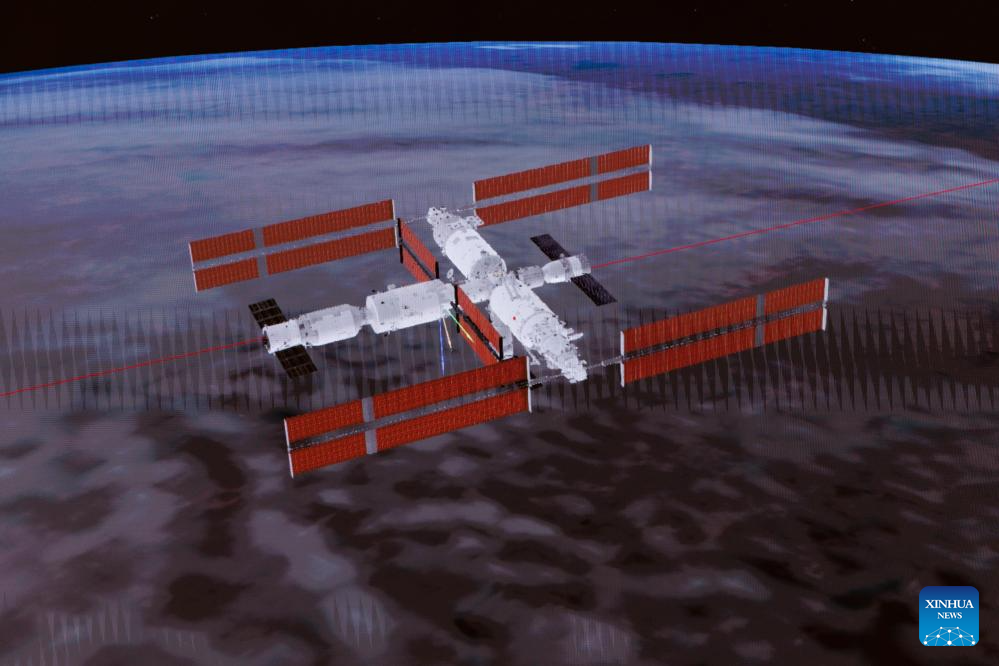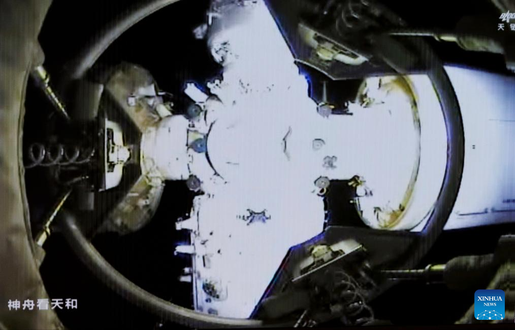 The spaceship made a fast, automated rendezvous and docking with the radial port of the space station's core module Tianhe at 11:49 p.m. (Beijing Time). The whole process took approximately 6.5 hours, said the CMSA.