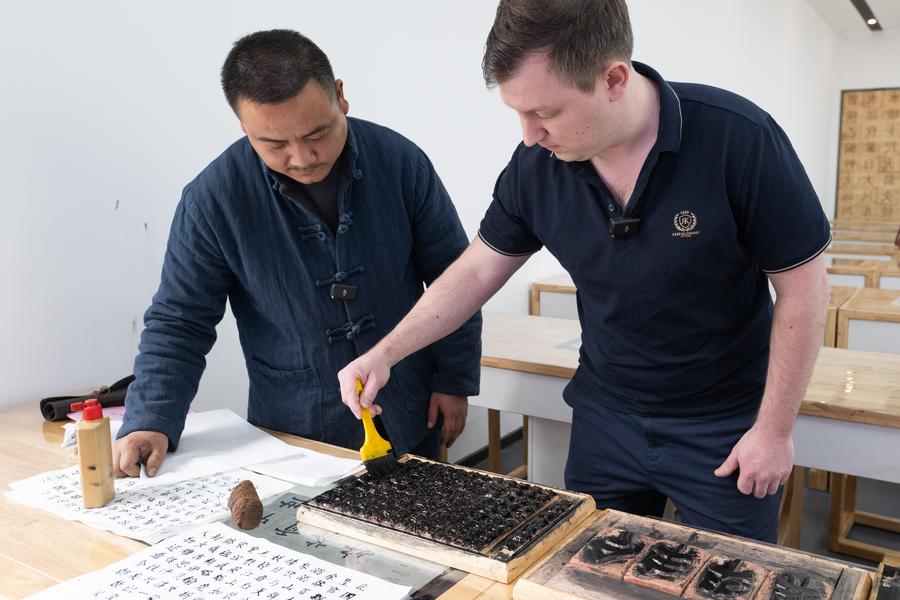 WUHAN, April 25 (Xinhua) -- In a workshop in Yingshan County, central China, German scholar Fabian Schrodt carefully pressed paper onto inked clay blocks, recreating an 11th-century innovation from ancient China -- Bi Sheng's movable-type printing.
