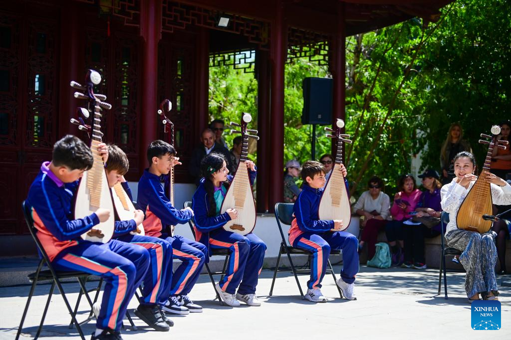 Maltese students stage a pipa ensemble performance at the Garden of Serenity in Santa Lucija, Malta, on April 27, 2025.(Photo by Jonathan Borg/Xinhua)